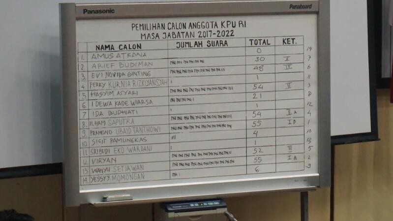 Berikut hasil lengkap perolehan suara 14 nama untuk keterpilihan 7 anggota KPU yang dihimpun dari rumahpemilu.org