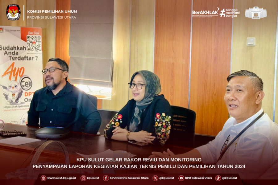 Manado, sulut.kpu.go.id - KPU Sulut melaksanakan Rapat Koordinasi Reviu dan Monitoring Penyampaian Laporan Kegiatan Kajian Teknis Pemilu dan Pemilihan Tahun 2024 bertempat di KPU Sulut, Rabu 24/09/2025