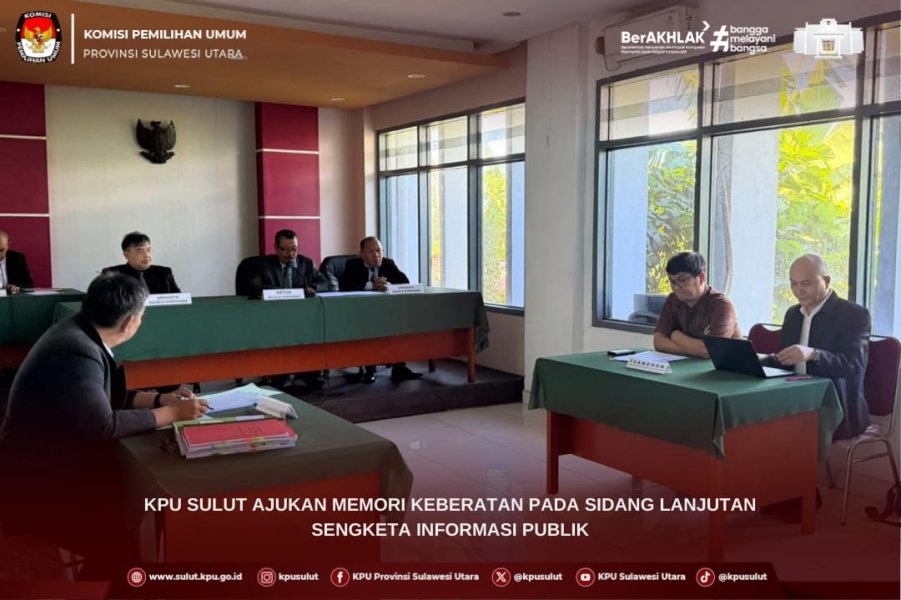 KPU Sulut menegaskan bahwa pada prinsipnya mendukung keterbukaan informasi publik sebagai bentuk akuntabilitas dan transparansi penyelenggaraan pemilu dan pemilihan, namun KPU Sulut menilai bahwa apabila syarat objek dan prosedural tersebut tidak terpenuhi, maka permohonan Sengketa Informasi Publik kepada Komisi Informasi belum memenuhi syarat sebagai Sengketa Informasi Publik.