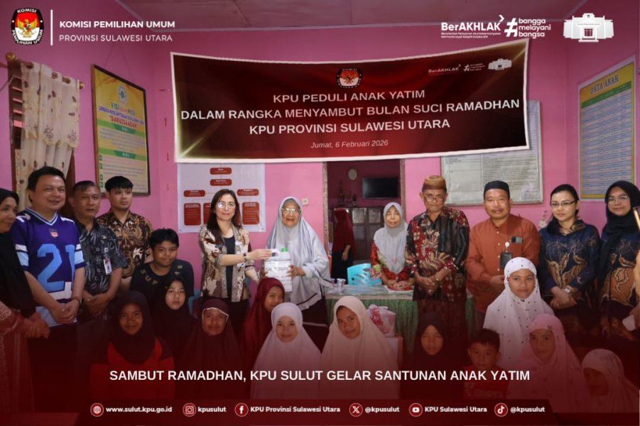 Manado, sulut.kpu.go.id – Dalam rangka menyambut Bulan Suci Ramadhan 1447 Hijriah, KPU Sulut melaksanakan kegiatan Santunan Anak Yatim sebagai bentuk kepedulian sosial yang berlangsung di Panti Asuhan Darussaada, Jumat (6/2).