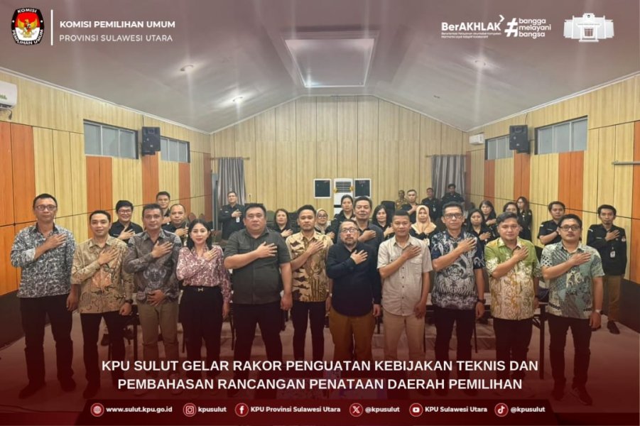 KPU Sulut Gelar Rakor Penguatan Kebijakan Teknis dan Pembahasan Rancangan Penataan Daerah Pemilihan
