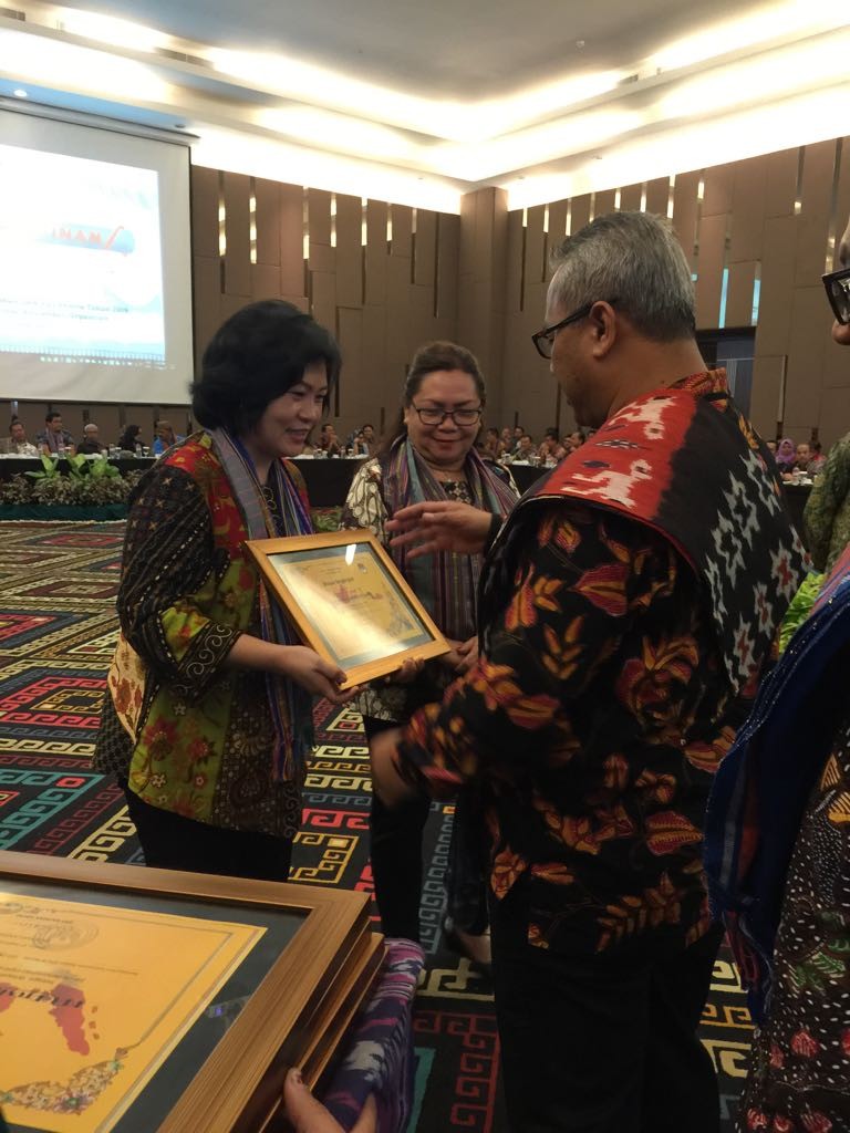 Keterangan Foto : Yessy Momongan dan Jona Oroh Menerima Piagam Penghargaan dari Ketua KPU RI, Arif Boediman