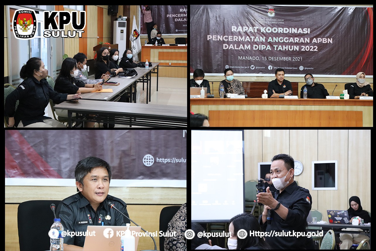 Bertempat di Ruang Aula KPU Provinsi Sulawesi Utara , hari ini Rabu, 15 Desember 2021 diselenggarakan Rapat Koordinasi Pencermatan Anggaran APBN dalam DIPA Tahun 2022.