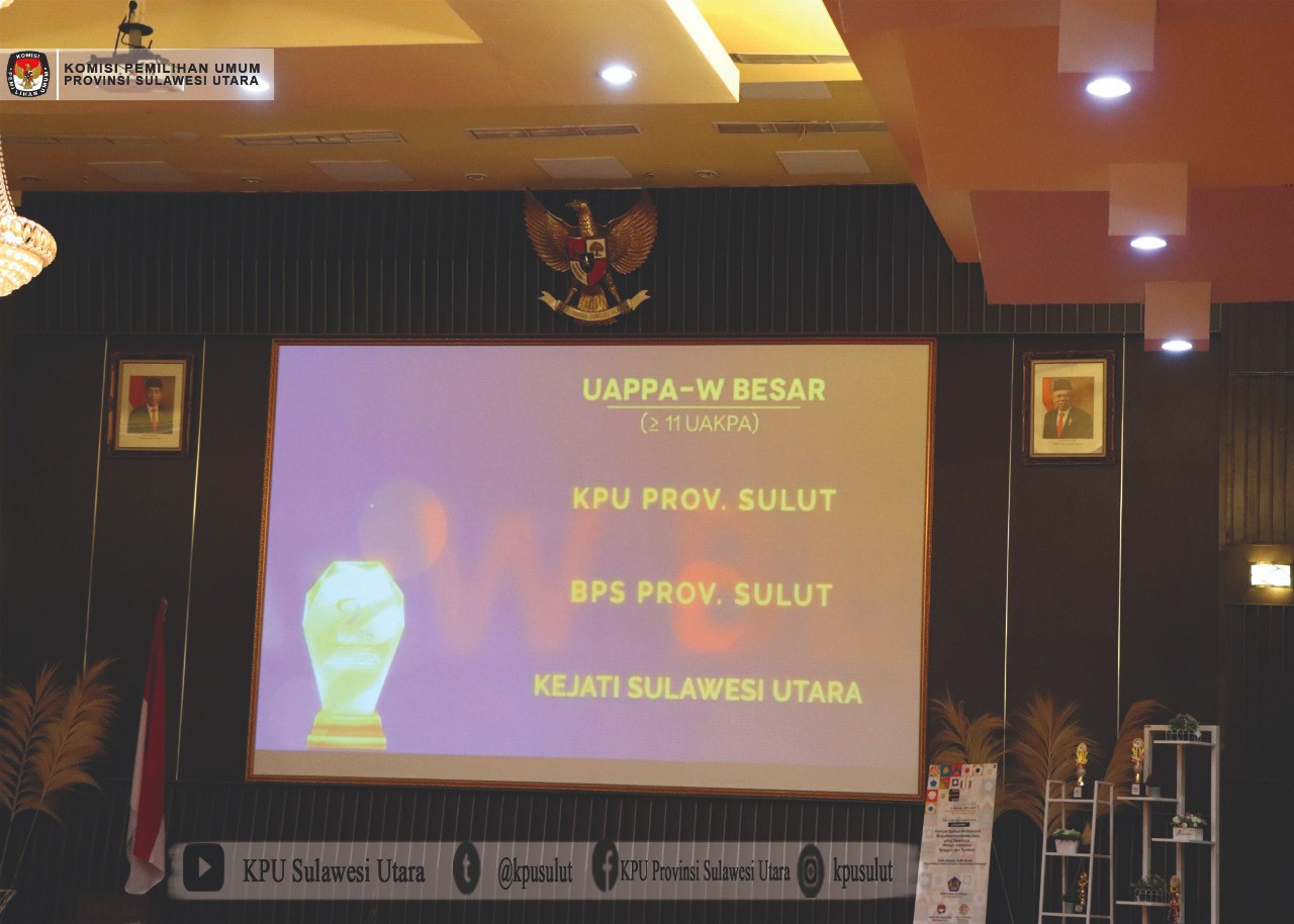 Penghargaan diterima langsung Sekretaris KPU Provinsi Sulawesi Utara, Pujiastuti yang diserahkan langsung oleh Wakil Gubernur Sulawesi Utara, Steven O. E Kandouw, di Manado, Jumat (3/12)