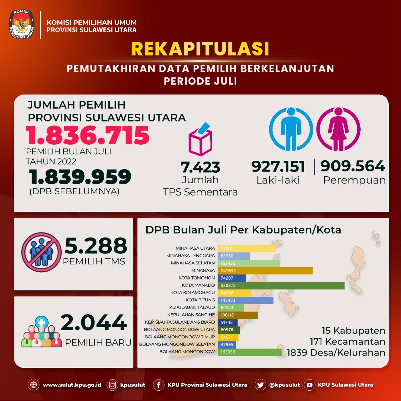 Manado, sulut.kpu.go.id – Anggota Komisi Pemilihan Umum (KPU) Provinsi Sulawesi Utara Lanny Ointu didampingi dengan Kasubag dan staff operator data melakukan audiensi ke Dinas Kependudukan dan Pencatatan Sipil (Disdukcapil) Provinsi Sulawesi Utara, pada Selasa,(09/8/2022). Audiensi ini, diterima langsung Kepala Dinas Kependudukan dan Pencatatan Sipil, Lynda Watania di ruang kerjanya. Lanny Ointu selaku Ketua Divisi Perencanaan Data dan Informasi menjelaskan tujuan kedatangan tim KPU Sulut ke Dinas Dukcapil Prov Sulut, dimana KPU Sulut terus melakukan proses pemutakhiran data pemilih berkelanjutan hingga Data Penduduk Potensial Pemilih Pemilu (DP4) diturunkan oleh Kemendagri. Selanjutnya Ointu menjelaskan bahwa DPB yang dikerjakan oleh KPU yang akan digunakan sebagai bahan sinkronisasi dengan data kependudukan DP4 untuk pemilihan umum tahun 2024. "Kami pastinya akan mendukung penuh kelancaran tahapan pemutakhiran data pemilih pada Pemilu Tahun 2024 ini. Kami akan mengimbau seluruh jajaran untuk tuntaskan pencetakan KTP-el sebagai upaya agar Disdukcapil bekerja bersama KPU untuk meningkatkan kualitas daftar pemilih pada Pemilu serentak Tahun 2024 mendatang." ujar Lynda Watania. Diskusi ini membahas perlunya sinergitas antara Disdukcapil dan KPU dalam menghadapi Pemilu 2024. Ke depan yang perlu dilakukan adalah KPU Kabupaten/Kota bersama dengan Dinas Kependudukan dan Pencatatan Sipil Kabupaten/Kota duduk bersama untuk melakukan sinkronisasi data yang belum padan dengan data kependudukan sehingga dapat diselesaikan bersama untuk mendukung pelaksanaan Pemilu 2024. (Endah/ed.LA)