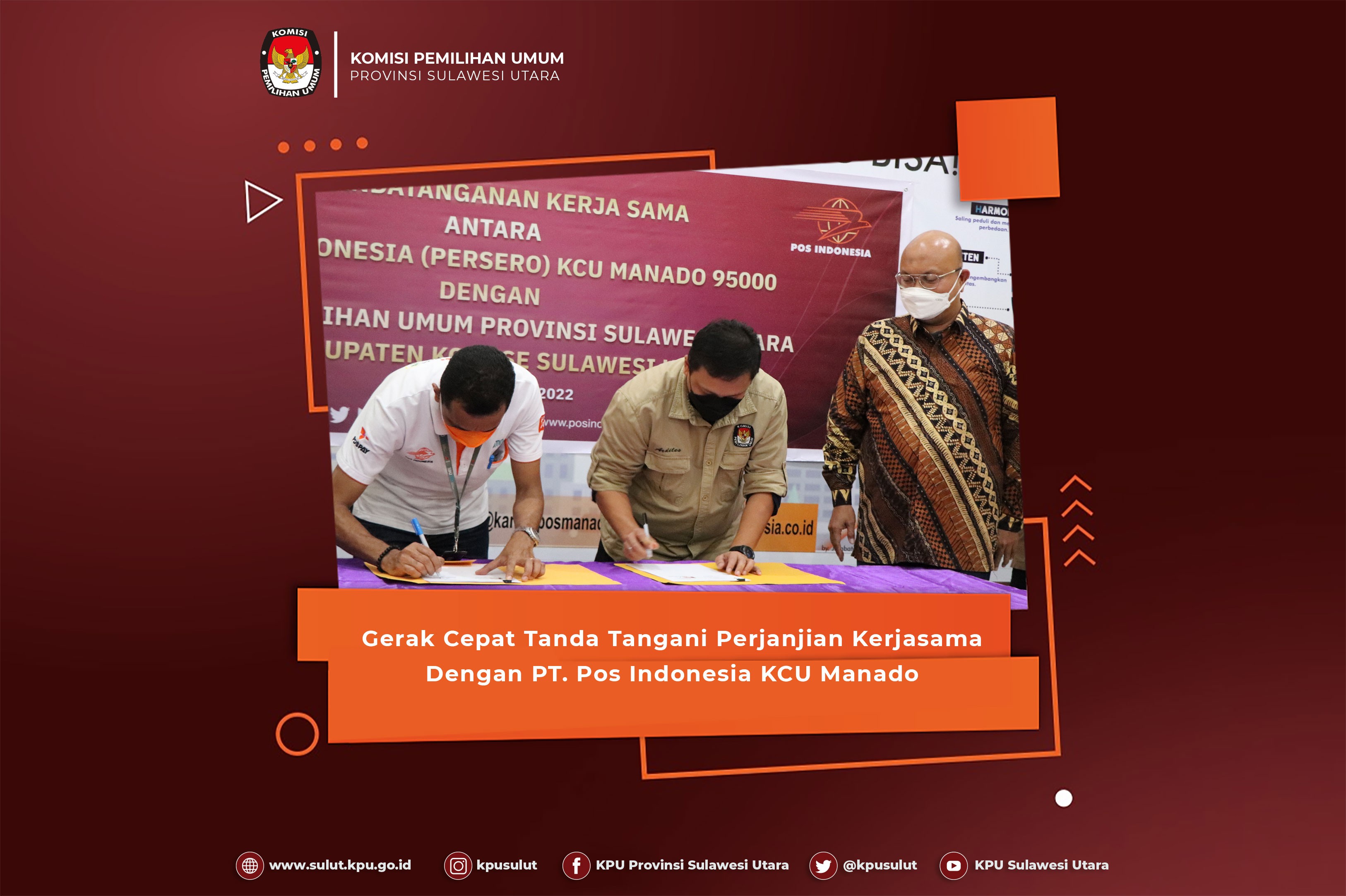 Manado, sulut.kpu.go.id - Manajemen Logistik Pemilu menjadi perhatian serius KPU, salah satunya adalah proses pendistribusian logistik jelang Pemilu dan Pemilihan tahun 2024, hal ini menjadi prioritas yang harus disiapkan sedini mungkin oleh KPU secara khusus KPU Sulut. Pasca penandatanganan MoU antara KPU RI dengan PT. Pos Indonesia (Persero) tanggal 17 Maret 2022, KPU Sulut kemudian menindaklanjuti dengan melakukan penandatanganan Perjanjian Kerja Sama (PKS) dengan PT. Pos Indonesia KCU Manado bersama dengan 15 KPU Kabupaten/Kota se-Sulut, bertempat di Kantor PT. Pos Indonesia KCU Manado pada Sabtu, 9 April 2022. Alexander Nitalessy yang bertindak selaku Executive General Manager mengucapkan selamat datang dan terima kasihnya kepada Ketua KPU RI Ilham Saputra, yang bersedia meluangkan waktunya hadir menyaksikan secara langsung sekaligus memberikan sambutan dan pengarahan, begitupun kepada KPU Sulut atas responnya yang telah bergerak cepat (gercep) dan supportnya yang luar biasa sehingga PKS ini tidak hanya dilakukan dengan KPU Sulut saja tetapi juga dengan 15 KPU Kabupaten/Kota se-Sulut secara serentak. Nitalessy berharap agar kolaborasi ini bisa menjadi contoh yang baik dan apa yang dihasilkan pada hari ini bisa bermanfaat diantara kedua pihak khususnya untuk menunjang program Pemerintah. Senada dengan Nitalessy Executive Vice President Regional 6 Pamasuka, Istiqomah Syariah juga mengungkapkan dukungannya. "Dengan adanya kerjasama ini PT. Pos Indonesia sebagai BUMN yang bergerak dibidang jasa, kurir, logistik dan jasa keuangan dengan kapasitas yang dimiliki berkomitmen untuk mendukung KPU Sulut dalam pendistribusian logistik Pemilu sesuai yang dibutuhkan demi menyukseskan proses penyelenggaraan Pemilu," ujar Istiqomah. Dalam sambutannya Ketua KPU RI Ilham Saputra, memberikan apresiasinya karena PT. Pos Indonesia KCU Manado yang telah menjadi pionir untuk memulai Penandatanganan PKS pasca ditandatanganinya MoU antara KPU dengan PT. Pos Indonesia. Ilham juga mengharapkan kerjasama yang dilakukan tidak hanya sebatas dalam pendistribusian logistik saja tetapi juga berkoordinasi tentang ilmu pendistribusian yang lebih baik misalnya dalam peningkatan kapasitasnya PT. Pos bisa mempunyai teknologi khusus agar bisa mendeteksi barang yang sudah sampai ataupun jangan sampai ada kejadian pada Pemilu dan Pemilihan 2024 nanti ada surat suara yang tertukar. Hadir mendampingi, Ketua KPU Sulut Ardiles Mewoh, Anggota KPU Sulut Salman Saelangi,Yessy Momongan, Meidy Tinangon, Lanny Ointu serta Sekretaris KPU Sulut Pujiastuti beserta jajaran Sekretariat. Menutup acara pada hari ini PT. Pos Indonesia KCU Manado memberikan cinderamata berupa perangko kepada Ketua KPU RI, Ketua KPU Sulut, yang kemudian dilanjutkan penyerahan cinderamata kepada Ketua KPU Kabupaten/Kota se-Sulut. (Bb/Ed.RL)