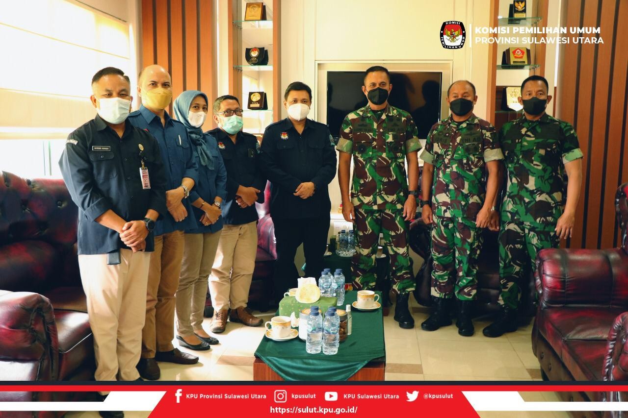 Manado, Serangkaian kunjungan kerja dilakukan KPU Sulut hal ini tentu saja merupakan usaha KPU Sulut untuk memaksimalkan persiapan-persiapan jelang Pemilu dan Pemilihan tahun 2024. Kali ini KPU Sulut menyambangi Komando Daerah Militer XIII/Merdeka Manado pada hari Selasa (8/2/2022), diterima langsung Panglima Daerah Militer (Pangdam) Mayjen TNI Alfred Denny Tuejeh yang didampingi Asisten Intel Kasdam XIII/Merdeka. Kolonel Kav. Kapti Hertantyawan, Asisten Teritorial Kasdam XIII/Merdeka. Kolonel Kav. Idris Soemantri Roni. Ketua KPU Sulut Ardiles Mewoh hadir langsung bersama dengan Meidy Tinangon,Salman Saelangi, Lanny Ointu serta perwakilan jajaran Sekretariat KPU Sulut Raymond F. Mamahit Pejabat Fungsional Penata Kelola Pemilu Madya. Mengawali percakapan Mewoh memperkenalkan Tim KPU Sulut yang hadir serta mengutarakan maksud kunjungan kerjanya kali ini. Selanjutnya Ardiles juga menyampaikan rasa terima kasihnya kepada pihak Kodam XIII Merdeka Manado karena selama ini KPU Provinsi dan jajaran KPU Kabupaten/Kota telah banyak terbantu terutama dalam hal pendisitribusian logisitik yang mana “kami bercermin dari pengalaman-pengalaman sebelumnya apabila KPU Sulut tidak mendapatkan dukungan penuh dari TNI tentu banyak kesulitan dan hambatan yang dihadapi baik itu cuaca maupun hambatan geografis jadi sekiranya untuk kedepannya kami masih membutuhkan dukungannya pak,” tambah Mewoh. Salman Saelangi menambahkan ”karena hubungan koordinasi yang baik antara KPU Sulut dan TNI sehingga berdampak pada Pemilihan Gubernur Provinsi Sulawesi Utara tahun 2020 dimana tingkat partisipasi masyarakat di Provinsi Sulawesi Utara ini dapat meraih yang tertinggi se Indonesia, hal ini tidak terlepas dari andil TNI yang turut melakukan sosialisasi-sosialisasi ke masyarakat bahwa aman untuk memilih ke TPS sehingga menimbulkan rasa aman dan nyaman untuk memilih”,ujar Saelangi. Mayjen TNI Alfredy Denny kemudian menanggapi hal tersebut ”memang TNI-POLRI pasti dilibatkan untuk membantu KPU demi kelancaran Pemilihan dan menurut kami KPU sebagai Penyelenggara Pemilu lah yang nantinya menentukan kualitas hasil Penyelenggaraan Pemilu tersebut, di lain pihak kami memang sudah didoktrin mulai dari tingkat Pusat bahwa kami mengemban tugas untuk mengawal rekan-rekan KPU sesuai mekanisme yang telah diatur agar bisa meyelenggaraan Pemilihan dengan baik dan sesuai dengan jadwal yang sudah ditentukan dan tentu saja dengan tetap menjaga netralitas kami”. Kemudian Jenderal bintang dua ini juga menitipkan harapan agar KPU dapat selalu menjaga komitmennya untuk mengawal hasil dari demokrasi ini.