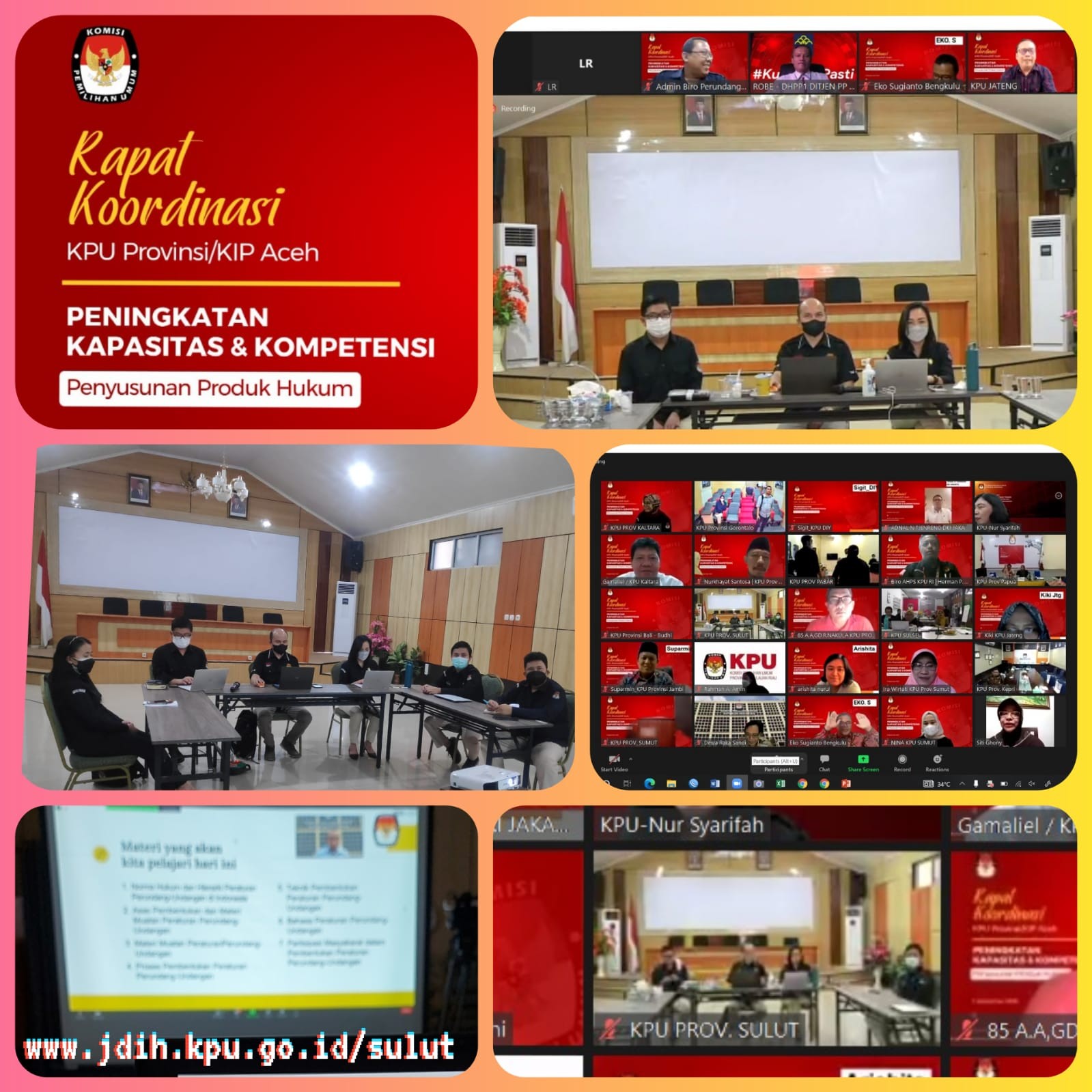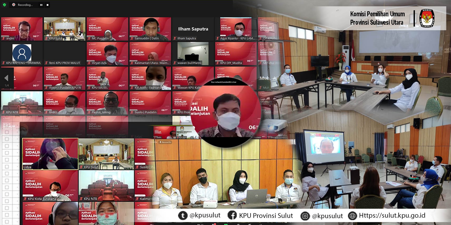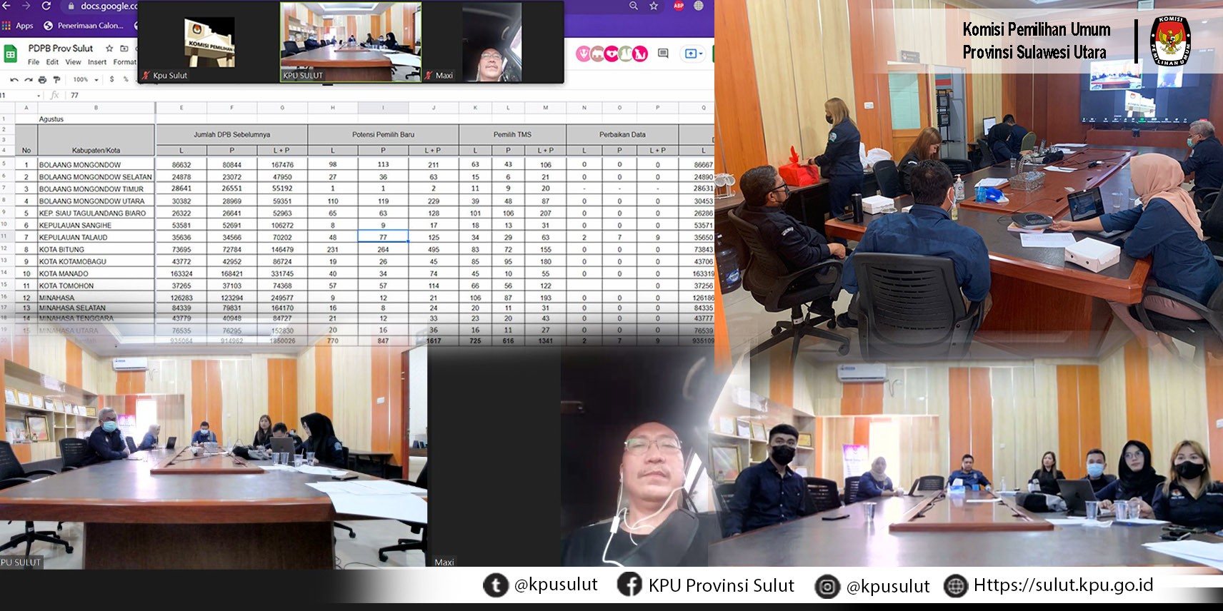 Manado, Rabu, 8 September 2021 - sulut.go.id KPU Provinsi Sulawesi Utara mengadakan Rapat Koordinasi Teknis terkait Pendataan Wilayah Administrasi untuk Persiapan Penataan Daerah Pemilihan Pemilu Tahun 2024. Rakor Teknis ini dihadiri oleh seluruh komisioner KPU Provinsi, Kasubag Teknis dan Seluruh Staf Teknis KPU Provinsi dengan mengikutsertakan seluruh Komisioner Divisi Teknis Penyelenggara, Kasubag dan Staf Teknis KPU Kab/Kota. Rakor Teknis dibuka oleh Ardiles Mewoh selaku ketua KPU Provinsi Sulawesi Utara, beliau menegaskan bawa agenda rapat koordinasi teknis ini dilaksanakan untuk memperkuat lembaga KPU sekaligus sebagai persiapan internal guna menghadapi Pemilu Tahun 2024 terkait Penataan Wilayah Pemilihan. Selanjutnya materi rapat koordinasi dipaparkan oleh Ketua Divisi Teknis KPU Provinsi Sulawesi Utara ibu Yessy Momongan. Koordinasi terkait ada atau tidaknya pemekaran wilayah daerah di provinsi Sulawesi Utara sangat penting dilaksanakan sebagai tindak lanjut instruksi KPU RI dan persiapan memasuki tahapan awal pada Pemilu Tahun 2024 yaitu terkait Daerah Pemilihan ungkap ibu Yessy. Rapat Koordinasi ini juga membahas hasil koordinasi KPU Kab/Kota dengan pemerintah setempat terkait perkembangan data administrasi wilayah pemerintahan. Sebelum sesi laporan dan tanya jawab dari sebagian peserta arahan komisioner KPU Provinsi Sulawesi Utara disampaikan oleh Bpk Salman Saelangi beliau mengatakan bahwa KPU Kab/Kota harus mendalami lagi PKPU yang sudah ada terkait Daerah Pemilihan. Rakor Teknis ditutup oleh ibu Yessy Momongan selaku Ketua Divisi Teknis Penyelenggara Provinsi Sulawesi Utara dengan sebelumnya memberikan tanggapan atas beberapa pertanyaan yang