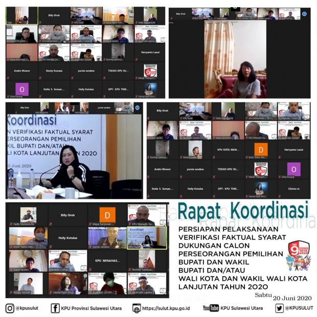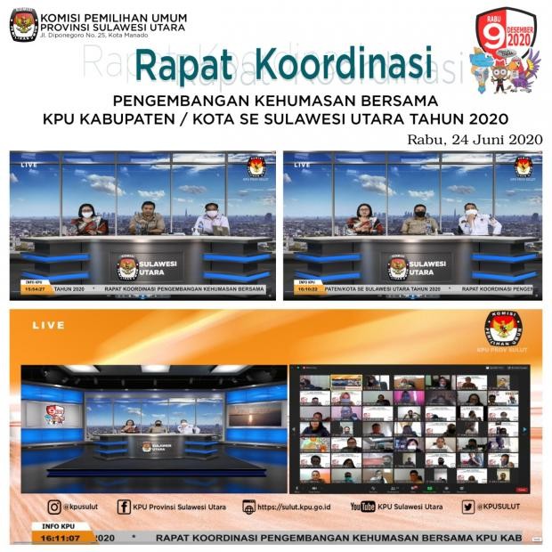 Manado, sulut.kpu.go.id - Wale Pemilu, Rabu, 24 Juni 2020 Komisi Pemilihan Umum Provinsi Sulawesi Utara mengadakan Rapat Koordinasi Kehumasan dengan KPU Kabupaten/Kota se Sulawesi Utara. Rakor yang dilaksanakan secara Virtual/Online ini diikuti Ketua Divisi SDM dan Parmas, Kasubag Teknis dan Hupmas serta Operator IT KPU Kabupaten/Kota Tujuan rakor ini adalah untuk memperkuat kapasitas kehumasan KPU Provinsi dan KPU Kabupaten/Kota, khususnya dalam hal diseminasi informasi melalui platform media social terutama untuk mensukseskan Pelaksanaan Pemilihan Gubernur dan Wakil Gubernur, Bupati dan Wakil Bupati dan/atau Wali Kota dan Wakil Wali Kota Lanjutan Tahun 2020. Acara dibuka secara resmi Ketua KPU Provinsi Sulawesi Utara, Ardiles Mewoh. dalam sambutannya, mengingatkan kembali akan peran kehumasan untuk ikut serta mensukseskan Pemilihan Lanjutan Tahun 2020. “Humas memiliki peran penting dalam kesuksesan penyelenggaraan Pemilihan Tahun 2020 ini, apalagi dalam kondisi New Normal sekarang, tentunya dibutuhkan inovasi dari Penyelenggara Pemilihan supaya informasi dapat tersampaikan dengan cepat, benar serta menarik sehingga dapat memunculkan kepercayaan publik terhadap penyelenggara” ujarnya. Pada Kesempatan yang sama Ketua Divisi Teknis Penyelenggaraan KPU Provinsi Sulawesi Utara, Yessy Momongan. Mengharapkan para Ketua Divisi SDM dan Parmas KPU Kabupaten/Kota serta personil sekretariat yang membidangi kehumasan untuk selalu mengupdate informasi dengan menggunakan media social yang dikelola masing-masing, namun juga Momongan mengingatkan agar harus selektif dalam menyebarluaskan informasi sehingga tidak membingungkan masyarakat. Lanny Ointu, Ketua Divisi Program Data KPU Provinsi Sulawesi Utara saat memberikan pengarahan mendorong KPU Kabupaten/Kota untuk bagaimana menjangkau Pemilih Se Sulawesi Utara dengan sentuhan Teknologi Informasi. “Tantangan kita adalah pada bagaimana supaya Humas memberi ruang seluas-luasnya kepada Pemilih untuk mengakses informasi kepemiluan”’ pungkasnya. “Dalam kondisi saat ini kinerja kehumasan mau tidak mau harus beradaptasi dengan lingkungan untuk itu maka Komisoner KPU Kabupaten/Kota harus mengawal bahkan terlibat secara langsung dalam kegiatan kehumasan terutama harus menguasai Teknologi Informasi, ujar Komisioner KPU Sulut, Salman Saelangi yang membidangi SDM, Sosialisasi dan Partisipasi Masyarakat Ditambahkannya juga “diperlukan upaya kita dalam mengoptimalkan media sosial yang dikelola antara lain dengan memaksimalkan Peralatan dan SDM yang dimiliki oleh KPU Kabupaten/Kota saat ini”’. Rangkaian acara Rakor Humas kali ini juga menghadirkan Narasumber yang menyampaikan materi dengan topik Penggunaan TIK dalam Sosialisasi Online / Media Sosial (Teori dan Simulasi).