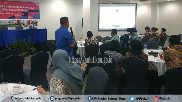 Manado, sulut.kpu.go.id- Sebagaimana upaya pelaksanaan Pasal 17 huruf f Undang-Undang Nomor 7 Tahun 2017 tentang Penyelenggara Pemilihan Umum, Komisi Pemilihan Umum (KPU) Provinsi Sulawesi Utara melaksanakan kegiatan Sosialisasi Penataan dan Pengelolaan Kearsipan di Lingkungan KPU Provinsi maupun KPU Kabupaten/Kota. Sosialisasi Penataan dan Pengelolaan Kearsipan ini dilaksanakan selama 1 hari yaitu pada tanggal 8 Oktober 2019 bertempat di Hotel Grand Whizz Megamas Manado. Hadir dalam kegiatan sosialisasi tersebut yaitu Ketua, Anggota dan Kepala Sub Bagian pada KPU Kabupaten/Kota di 15 Kabupaten/Kota. Evans Tulungen selaku Kepala Sub Bagian Umum dan Logistik KPU Provinsi Sulawesi Utara dalam pemaparannya menyampaikan bahwa pentingnya pengelolaan arsip di lingkungan KPU Provinsi maupun KPU Kabupaten/Kota. Oleh karena itu perlu dilakukan sosialisasi kepada KPU Kabupaten/Kota atas kewajiban KPU Provinsi dan Kabupaten/Kota dalam pengelolaan arsip. "Sebagaimana diatur dalam Pasal 17 Huruf f kita selaku penyelenggara baik KPU Provinsi dan KPU Kabupaten/Kota mempunyai kewajiban mengelola, memelihara, dan merawat arsip/ dokumen serta melaksanakan penyusutannya berdasarkan jadwal retensi arsip yang disusun oleh KPU Provinsi dan lembaga kearsipan provinsi berdasarkan pedoman yang ditetapkan oleh KPU dan Arsip Nasional Republik Indonesia", ujar Evans. Perkembangan teknologi informasi memberikan perubahan besar dalam dunia bisnis dan administrasi. Konsep paperless office menjadi isu penting yang diadopsi oleh berbagai organisasi bisnis maupun sosial saat ini sebagai respon atas terjadinya pemanasan bumi yang terjadi. Kedudukan arsip digital dapat dilihat dalam dua perspektif, yaitu (1) dalam perspektif media penyimpanan arsip, dan (2) dalam persepektif proses kegiatan pengelolaan arsip. Dalam persepektif media penyimpanan arsip, kedudukan arsip digital termasuk dalam kelompok arsip media baru, yaitu arsip yang isi informasi dan bentuk fisiknya direkam dalam media magnetik menggunakan perangkat elektronik atau dalam bentuk media citra bergerak, gambar statik dan rekaman suara yang diciptakan dalam rangka pelaksanaan kegiatan organisasi, maupun perorangan Sebagai terobosan dalam pengelolaan arsip maka dalam proyek perubahan yang digagas oleh Evans dalam pengelolaan arsip di lingkungan KPU Provinsi dan KPU Kabupaten/Kota se Sulawesi Utara, dilakukan proses digitalisasi arsip kepemiluan. Dengan mengoptimalisasi Pengelolaan Arsip melalui Kelompok Kerja Kearsipan dengan model Electronic Archive Management System (E-VANS), diharapkan dapat meningkatkan pemahaman dan kepedulian atas pengelolaan arsip. Untuk membantu Kelompok Kerja dalam pengimplementasian Electronic Archive Management System (E-VANS) maka dibuat suatu Sistem yang dinamakan Electronic Archive Management Informatioan System (E-VANS). Diharapakan dengan adanya sistem ini dapat membantu pengelolaan arsip di lingkungan KPU. Adapun tujuan Digitalisasi Arsip dengan metode ini yaitu : Terdapatnya salinan arsip dalam bentuk elektronik. Terjamin terekamnya informasi yang terkandung dalam lembaran arsip. Kemudahan akses terhadap arsip elektronik Kecepatan penyajian informasi yang terekam dalam arsip elektronik. Keamanan akses arsip elektronik dari pihak yang tidak berkepentingan. Sebagai fasilitas backup arsip-arsip vital Menjalan undang-undang kearsipan dan Pepres KPU Kabupaten/Kota sebagai peserta sosialiasi mengapresiasi terobosan yang dilakukan oleh KPU Provinsi Sulawesi Utara melalui Sub Bagian Umum dan Logistik dibawah pimpinan Evans Tulungen. Sistem Informasi ini selanjutnya akan diluncurkan secara resmi penggunannya yang direncanakan akan dilaksanakan pada minggu ketiga bulan Oktober oleh Ketua KPU Provinsi Sulawesi Utara. (admin/kpusulut/red:hupmas)