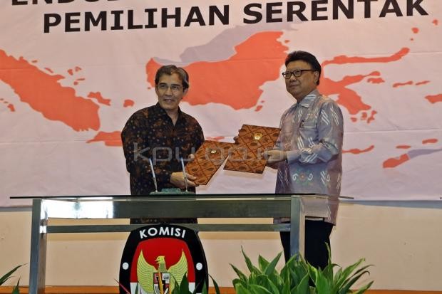 Jakarta, sulut.kpu.go.id – Pemilihan Gubernur dan Wakil Gubernur, Bupati dan Wakil Bupati, dan/atau Walikota dan Wakil Walikota Tahun 2017 akan dilaksanakan pada tanggal 15 Februari 2017. Menyongsong tahapan pemutakhiran data pemilih pemilihan serentak 2017 tersebut, Kementerian Dalam Negeri (Kemendagri) menyerahkan Daftar Penduduk Pemilih Potensial Pemilihan (DP4) kepada Komisi Pemilihan Umum (KPU), Rabu (14/7). Menteri Dalam Negeri (Mendagri) Tjahjo Kumolo menyerahkan langsung DP4 tersebut kepada KPU yang diwakili oleh Plt. Ketua KPU RI Hadar Nafis Gumay di Ruang Sidang Utama Lantai 2 KPU RI. Acara penyerahan ini juga dihadiri oleh para Komisioner KPU RI, Direktur Jenderal Kependudukan dan Catatan Sipil (Dirjen Dukcapil) Kemendagri Zudan Arif Fakrulloh, dan Ketua Bawaslu RI Muhammad. Dalam acara tersebut, Hadar menjelaskan pemilihan serentak tahun 2017 ini akan diselenggarakan di 101 daerah yang terdiri dari 7 pemilihan Gubernur dan Wakil Gubernur, 18 Pemilihan Walikota dan Wakil Walikota, dan 76 Pemilihan Bupati dan Wakil Bupati. Pemilihan ini akan diselenggarakan oleh 7 KPU Provinsi/KIP Aceh dan 138 KPU/KIP Kabupaten/Kota. “Dari total 138 KPU/KIP Kabupaten/Kota, 69 diantaranya akan menyelenggarakan hanya Pemilihan Bupati/Walikota, 44 hanya akan menyelenggarakan Pemilihan Gubernur dan sebanyak 25 KPU/KIP Kabupaten/Kota akan menghelat secara bersamaan Pemilihan Bupati/Walikota dan Pemilihan Gubernur,” jelas Hadar. Selain DP4, tambah Hadar, bahan yang digunakan untuk menyusun pencocokan dan penelitian (coklit) daftar pemilih adalah daftar pemilih pemilu atau pilkada terakhir. Pemilihan serentak tahun 2017 ini sebanyak 38 Kabupaten/Kota akan menggunakan daftar pemilih serentak Tahun 2015, sedangkan 100 Kabupaten/kota lainnya akan menggunakan daftar pemilih Pemilu Presiden dan Wakil Presiden Tahun 2014. “KPU akan melakukan konsultasi dengan DPR dan berkoordinasi dengan pemerintah mengenai daftar pemilih. Hasil koordinasi ini kami jadikan evaluasi dalam pengembangan data KPU dalam sidalih. KPU akan berusaha sekuat tenaga, baik dari sisi peraturan, maupun data pemilih, sehingga diharapkan daftar pemilih pemilihan 2017 ini lebih akurat, dan masyarakat bisa mendukung dengan partisipasi aktif. Kami juga mengharapkan pengawasan yang intensif dari Bawaslu & masyarakat luas, sehingga kita bisa menciptakan daftar pemilih yang lebih baik,” ujar Hadar yang mengemban tugas Plt Ketua KPU RI. Sementara itu Mendagri Tjahjo Kumolo mengungkapkan bahwa pemerintah tidak akan ikut campur dengan apa yang menjadi keputusan KPU dan Bawaslu sebagai penyelenggara pemilihan. Namun mendagri mengharapkan perhatian yang lebih pada penyelenggaraan pemilihan di DKI Jakarta, Aceh, dan Papua. Tjahjo juga mengharapkan penyelenggara pemilihan dan seluruh stakeholder bisa solid, sehingga apabila ada permasalahan bisa diatasi dengan baik. (arf/red. FOTO KPU/ris/Hupmas) Sumber : kpu.go.id