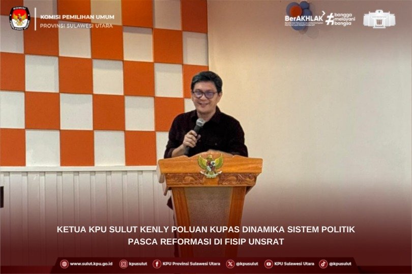 *Manado, sulut.kpu.go.id* – Ketua KPU Sulut Kenly Poluan diundang menjadi narasumber dalam Kuliah Umum Program Studi Ilmu Pemerintahan Fakultas Ilmu Sosial dan Politik (FISIP) Universitas Sam Ratulangi (Unsrat), bertema “Dinamika Kontemporer Sistem Partai Politik dan Kepartaian di Indonesia Pasca Reformasi dan Menuju Era Baru yang Demokratis dan Terbuka”, yang digelar di Aula FISIP Unsrat, rabu(12/11). Kegiatan yang dibuka secara resmi oleh Dekan FISIP Unsrat, Dr. Ferry Daud Liando ini dihadiri oleh jajaran pimpinan fakultas, dosen, serta ratusan mahasiswa Ilmu Pemerintahan dan Ilmu Politik. Dalam paparannya, Poluan membedah berbagai fenomena dan tantangan politik pasca reformasi, termasuk isu pragmatisme partai politik, dominasi oligarki, kooptasi lembaga, serta distorsi ruang publik akibat disinformasi. Ia juga menyoroti bagaimana sistem multipartai dan presidensial di Indonesia menghadirkan kompleksitas tersendiri dalam menjaga stabilitas demokrasi. Dalam sesi tanya jawab, Poluan juga mengajak mahasiswa untuk menjadi bagian dari generasi yang kritis terhadap arah politik bangsa. Ia menegaskan bahwa menjaga janji reformasi bukan hanya tugas lembaga penyelenggara pemilu, tetapi juga tanggung jawab kolektif seluruh elemen masyarakat. Kegiatan ini berlangsung dinamis dengan antusiasme tinggi dari mahasiswa yang aktif mengajukan pertanyaan dan berdiskusi. Melalui kuliah umum diharapkan menjadi ruang pembelajaran dan refleksi kritis bagi generasi muda untuk memahami realitas politik Indonesia sekaligus memperkuat komitmen terhadap demokrasi yang berintegritas.