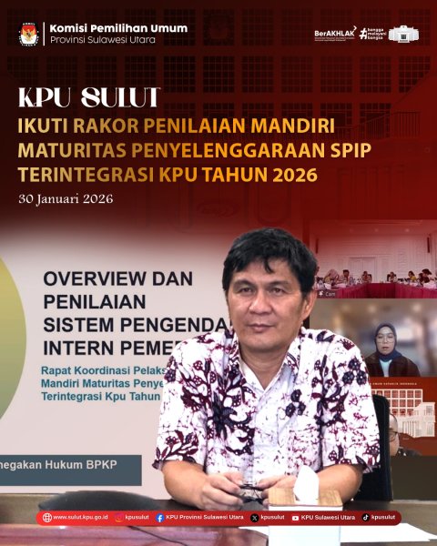 Manado, sulut.kpu.go.id – KPU Sulut mengikuti Rapat Koordinasi Pelaksanaan Penilaian Mandiri Maturitas Penyelenggaraan Sistem Pengendalian Intern Pemerintah (SPIP) Terintegrasi KPU Tahun 2026 yang dilaksanakan secara daring melalui Zoom Meeting, Jumat (30/01). Kegiatan dibuka secara resmi oleh Ketua Divisi Hukum dan Pengawasan KPU RI, Iffa Rosita. Dalam sambutannya, Iffa menegaskan bahwa penilaian SPIP merupakan instrumen pengendalian yang dilaksanakan secara menyeluruh sebagai bentuk kontrol terhadap penyelenggaraan tugas dan fungsi pada satuan kerja KPU. Iffa menambahkan bahwa penguatan SPIP perlu dilakukan sejak awal tahun agar pelaksanaannya selama periode Januari hingga Desember dapat berjalan lebih optimal. Ia juga menyampaikan bahwa masih terdapat sejumlah aspek yang perlu diperbaiki dalam implementasi SPIP, sehingga pada tahun 2026 penguatan SPIP diharapkan dapat dilaksanakan secara konsisten guna meminimalisir permasalahan pada saat tahapan kegiatan berlangsung. Kegiatan dilanjutkan dengan pemaparan materi oleh Tim Direktorat Pengawasan Bidang Politik dan Penegakan Hukum BPKP, Putriane dan Aldiza yang menjelaskan terkait tiga poin utama dalam pembahasan yakni overview SPIP, proses penilaian maturitas penyelenggaraan SPIP terintegrasi, serta hasil evaluasi maturitas penyelenggaraan SPIP. Dalam Kegiatan juga dijelaskan mengenai tata cara pengisian kertas kerja Penilaian Mandiri Maturitas Penyelenggaraan SPIP Terintegrasi oleh Tim Direktorat Pengawasan Bidang Politik dan Penegakan Hukum BPKP. Rapat koordinasi ini diikuti oleh Ketua KPU Provinsi Sulut Kenly Poluan, Ketua Divisi Hukum dan Pengawasan KPU Sulut Meidy Tinangon bersama Sekretaris KPU Sulut Meidy Malonda serta Ketua dan Anggota Tim Satuan Tugas SPIP KPU Sulut.