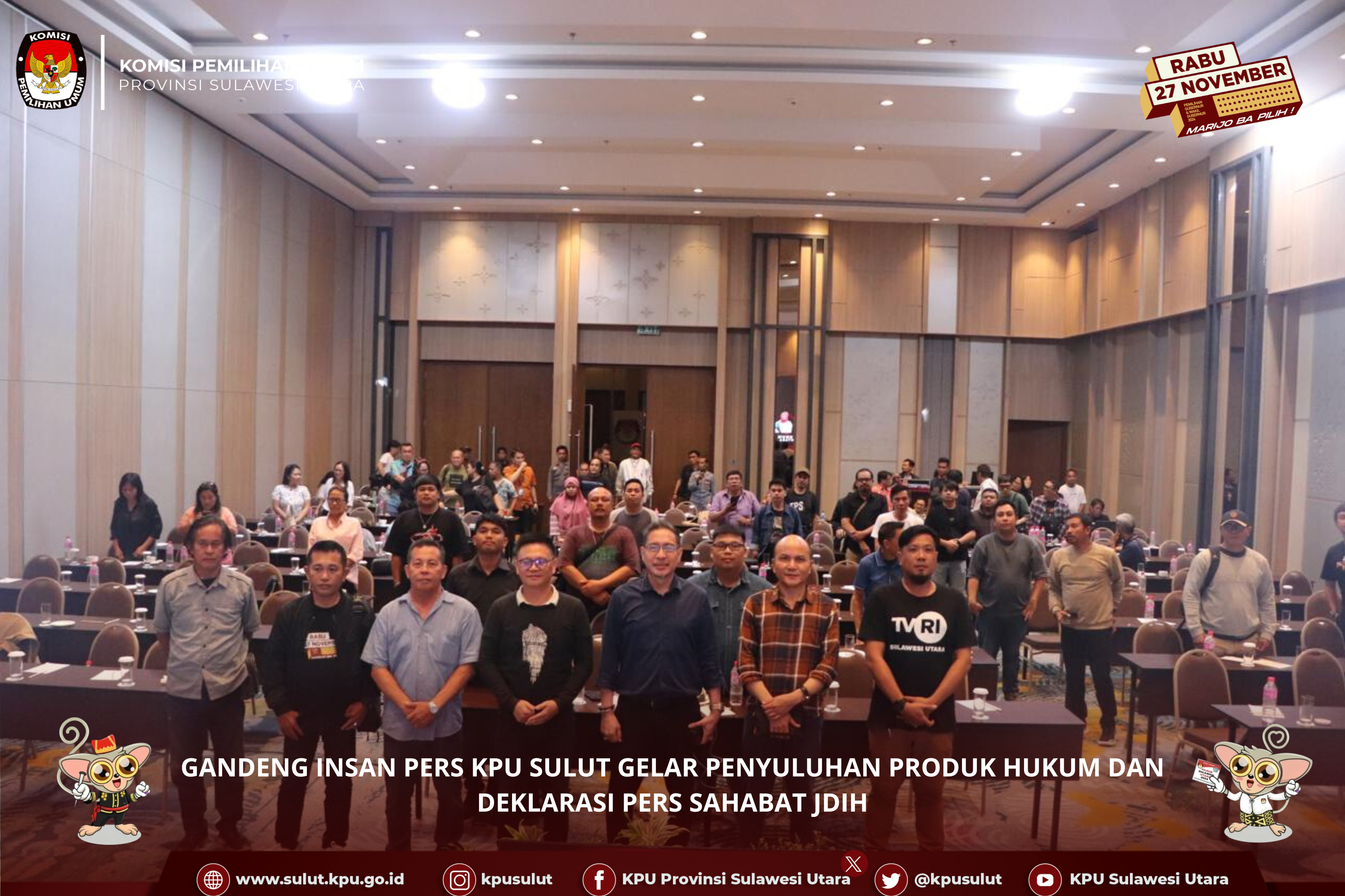 Manado, sulutkpu.go.id - KPU Sulut menggelar kegiatan penyuluhan produk hukum Pemilihan Gubernur dan Wakil Gubernur Sulawesi Utara Tahun 2024 kepada para awak media. Kegiatan ini berlangsung di Hotel Luwansa Manado dari tanggal 15 hingga 17 Agustus 2024. Kegiatan ini diikuti oleh 120 peserta yang terdiri dari berbagai media di Sulawesi Utara. Selain penyuluhan, acara tersebut juga dirangkaikan dengan deklarasi Pers Sahabat Jaringan Dokumentasi dan Informasi Hukum (JDIH) KPU Sulut. Penyuluhan produk hukum unruk insan pers digelar untuk meningkatkan pemahaman media mengenai regulasi pemilihan kepala daerah. Sedangkan deklarasi Pers Sahabat JDIH bertujuan untuk memperkuat kemitraan KPU dan insan pers, dan meningkatkan peran media dalam penyebarluasan produk hukum pilkada kepada publik secara luas. Dalam sambutannya, Anggota KPU Sulut, Lanny Ointu menjelaskan bahwa pada kegiatan ini penyuluhan hukum, Peraturan KPU (PKPU) akan dijelaskan dengan lebih spesifik karena ada beberapa perbedaan mendasar antara PKPU Pilkada tahun 2020 dan PKPU yang nantinya akan digunakan pada Pilkada 2024, salah satunya dalam hal coklit. “Pemutakhiran data pemilih di PKPU 2020 lewat metode de facto dimana yang bersangkutan harus ada ditempat saat pencoklitan, untuk sekarang ini 2024 itu dengan metode de jure, harus ada dokumen kependudukan, walaupun orangnya ada tapi tidak ada dokumen itu tidak bisa, jadi harus ada bukti kependudukannya,” ujarnya. KPU Sulut juga mengundang beberapa narasumber yaitu mewakili Kepala BIN Daerah Provinsi Sulut, Alfons Sumenge, akademisi Stevan O. Voges yang juga koordinator Justitia Societas Community, Ketua Bawaslu Provinsi Sulut Ardiles Mewoh, Kasie Intel Korem 131 Santiago, Kapten Leonard mewakili Komandan Resor Militer 131 Santiago, Komandan Pangkalan Udara Sam Ratulangi, IR. Florendo V. Jacobus. Hadir juga sebagai narasumber, mewakili Kepala Kepolisian Daerah Provinsi Sulut, IPDA Wem Sangkay dan Tenaga Ahli Dewan Pers RI, Jamalul Insan, mewakili Kejati Sulut, Morais Barakati, dan Sekretaris Kesbangpol Sulut, Johny Suak. Kegiatan kemudian dilanjutkan dengan penandatanganan Deklarasi dan Komitmen 120 insan pers sebagai Sahabat JDIH KPU Sulut, yang secara simbolis diwakili oleh dua wartawan Arfin Tompodung dan Juindah Pesik. Ketua KPU Sulut, Kenly Poluan yang didampingi oleh Anggota Meidy Tinangon, Salman Saelangi dan Awaluddin Umbola saat penutupan kegiatan memberikan apresiasi terhadap apa yang sudah dilakukan media, terkait dengan komitmen bersama untuk memasyarakatkan kerangka hukum pilkada yang bermuara pada penegakan pilkada yang jujur, adil, bebas sesuai dengan asas dalam konstitusi dan prinsip undang-undang penyelenggaraan pemilu dan pilkada. "Mudah-mudahan ini bisa kita laksanakan terutama komitmen dan pokok pikiran yang sudah dibacakan" ujarnya. Dari kegiatan ini juga diharapkan dapat menjalin hubungan yang lebih erat antara KPU dan Media, serta memastikan bahwa semua informasi hukum mengenai pilakda dapat diakses dengan mudah oleh masyarakat.