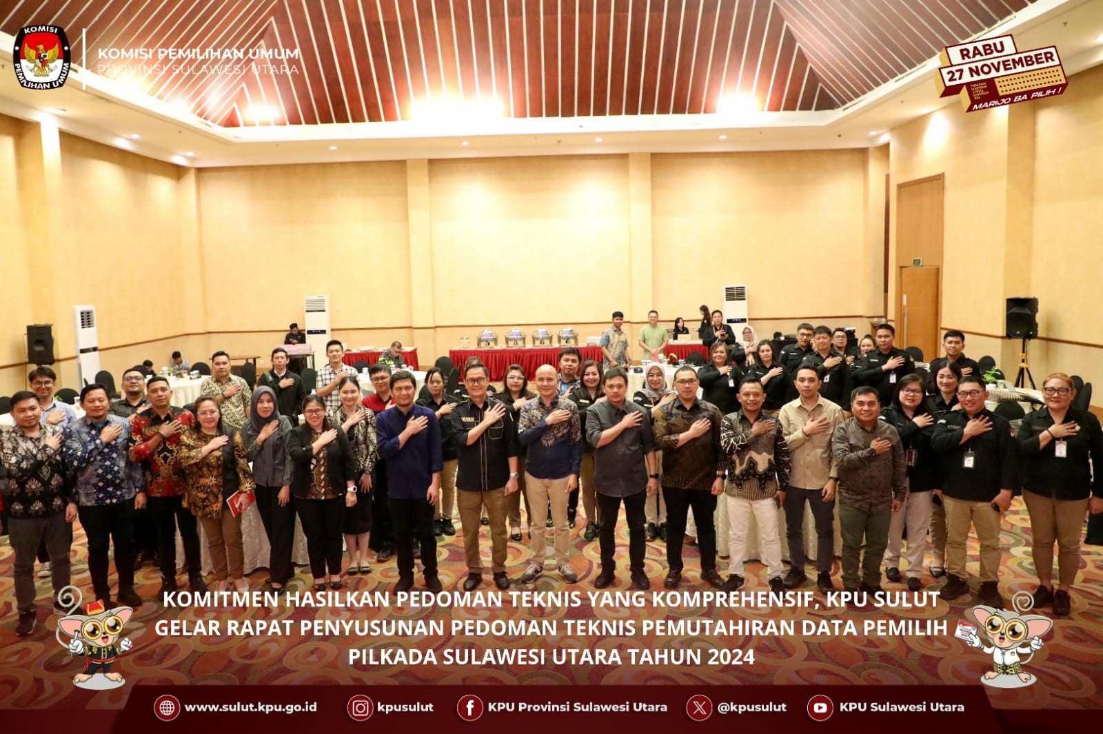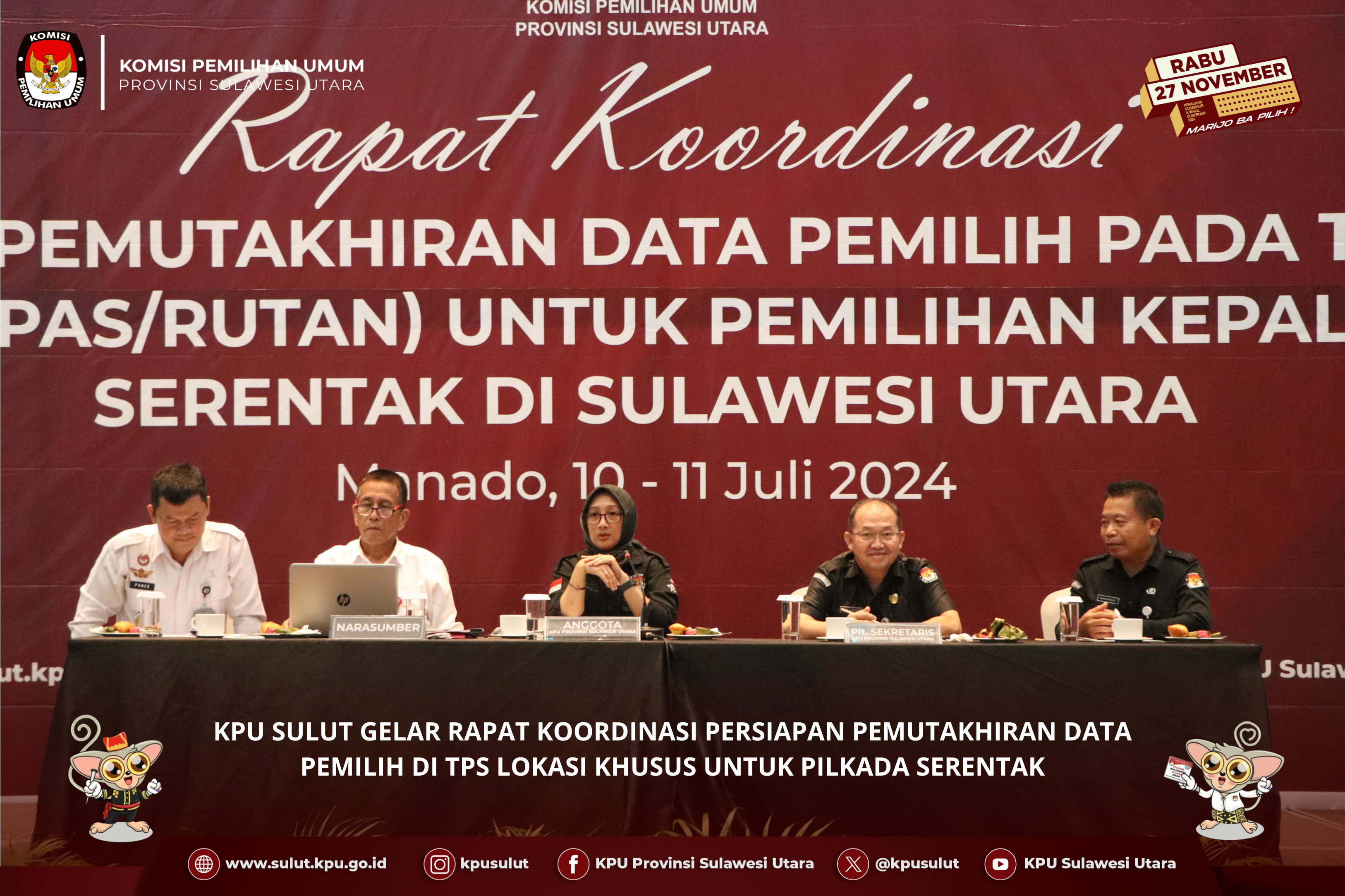 Manado, sulut.kpu.go.id- Rabu, 10 Juli 2024 – bertempat di Hotel Aston Manado KPU Sulut menggelar Rapat Penyusunan Pedoman Teknis Pemutahiran Data Pemilih Pemilihan Gubernur dan Wakil Gubernur Sulawesi Utara Tahun 2024 yang berlangsung dari tanggal 10 sampai 12 Juli 2024. Rapat ini diikuti oleh Ketua Divisi Hukum dan Pengawasan, Ketua Divisi Perencanaan Data dan Informasi, Kasubag Hukum dan SDM, Kasubag Perencanaan Data dan Informasi di 15 KPU Kabupaten/Kota se- Sulut serta Pegiat Pemilu. Ketua KPU Sulut Kenly Poluan dalam sambutannya menekankan pentingnya menemukan solusi terbaik bagi setiap masalah teknis yang muncul selama pemutakhiran data pemilih. "Kami berharap hasil dari rapat ini bisa menghasilkan produk hukum yang mampu menjawab berbagai permasalahan dalam pemutakhiran data pemilih," ujarnya. Selain itu, Anggota KPU Sulut, Salman Saelangi, turut menyampaikan konteks pemutakhiran data pemilih, dengan menyoroti tahapan yang disusun secara terstruktur sesuai jadwal yang telah ditetapkan. Ia juga menggarisbawahi perlunya pedoman teknis yang tidak hanya mengacu pada pedoman provinsi tetapi juga harus disesuaikan dengan kebutuhan lokal di tingkat kabupaten/kota. Acara ini juga dihadiri oleh narasumber dari Anggota Dewan Kehormatan Penyelenggara Pemilu (DKPP) RI, Muhammad Tio Aliansyah, yang membahas mengenai integritas dalam pengawasan tahapan kepala daerah tahun 2024 serta dasar hukum dan kode etik penyelenggara pemilu. Ketua Bawaslu Sulut Ardiles Mewoh juga memberikan wawasan tentang kebijakan pengawasan tahapan pemutahiran data pemilih serta prioritas pengawasan coklit. Diskusi dalam rapat ini turut dimeriahkan dengan materi dari narasumber Tommy Sumakul yang membahas hierarki peraturan perundang-undangan dan kedudukan peraturan KPU, serta Toar Palilingan yang mengupas bahasa hukum dalam penyusunan produk hukum. Acara dilanjutkan dengan sesi tanya jawab yang antusias dari para peserta, dimana hal ini menunjukkan komitmen peserta untuk menghasilkan pedoman teknis yang komprehensif dan dapat diimplementasikan dengan baik dalam proses pemilihan Kepala Daerah di Sulawesi Utara tahun 2024.