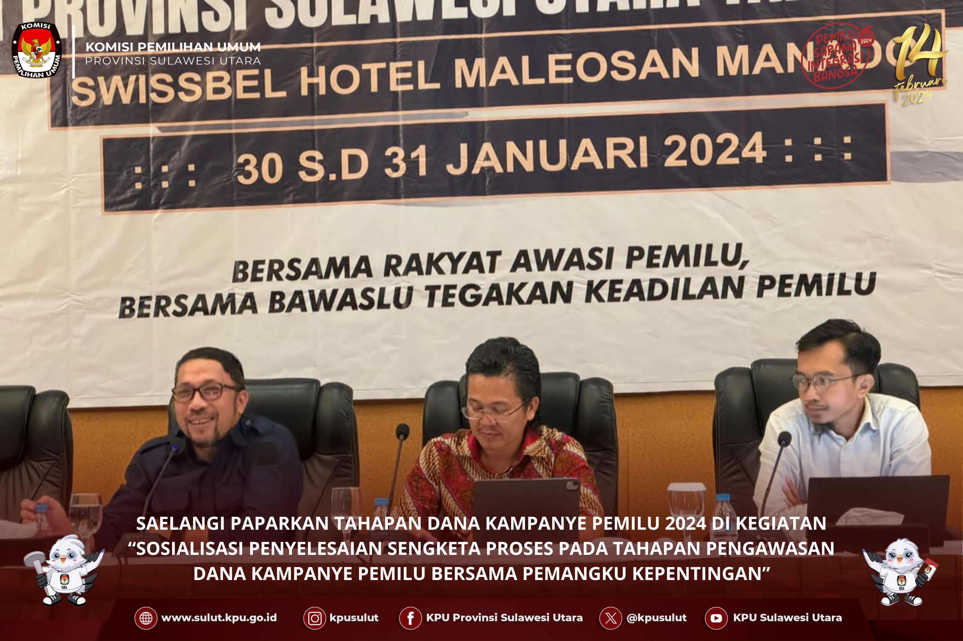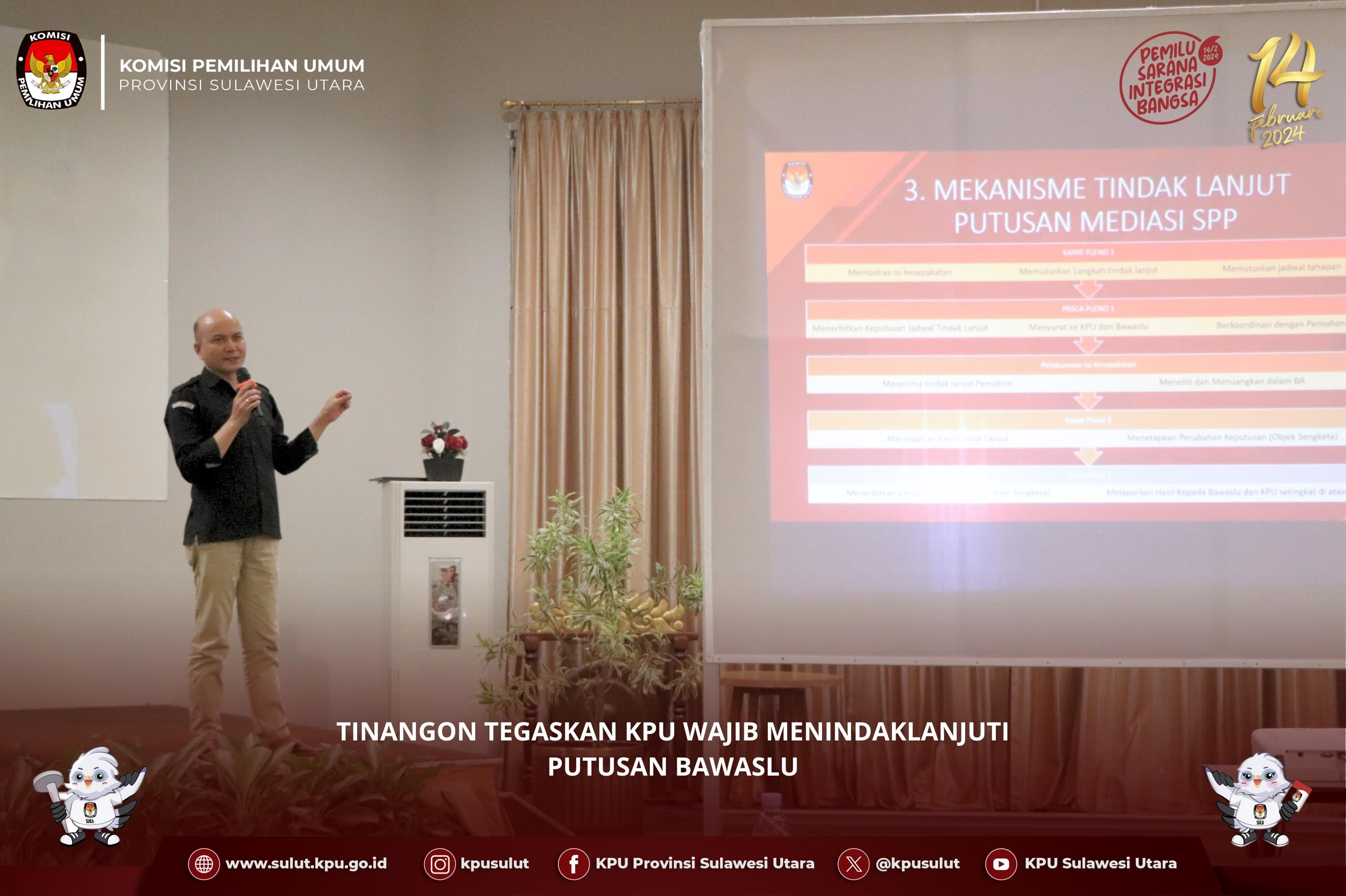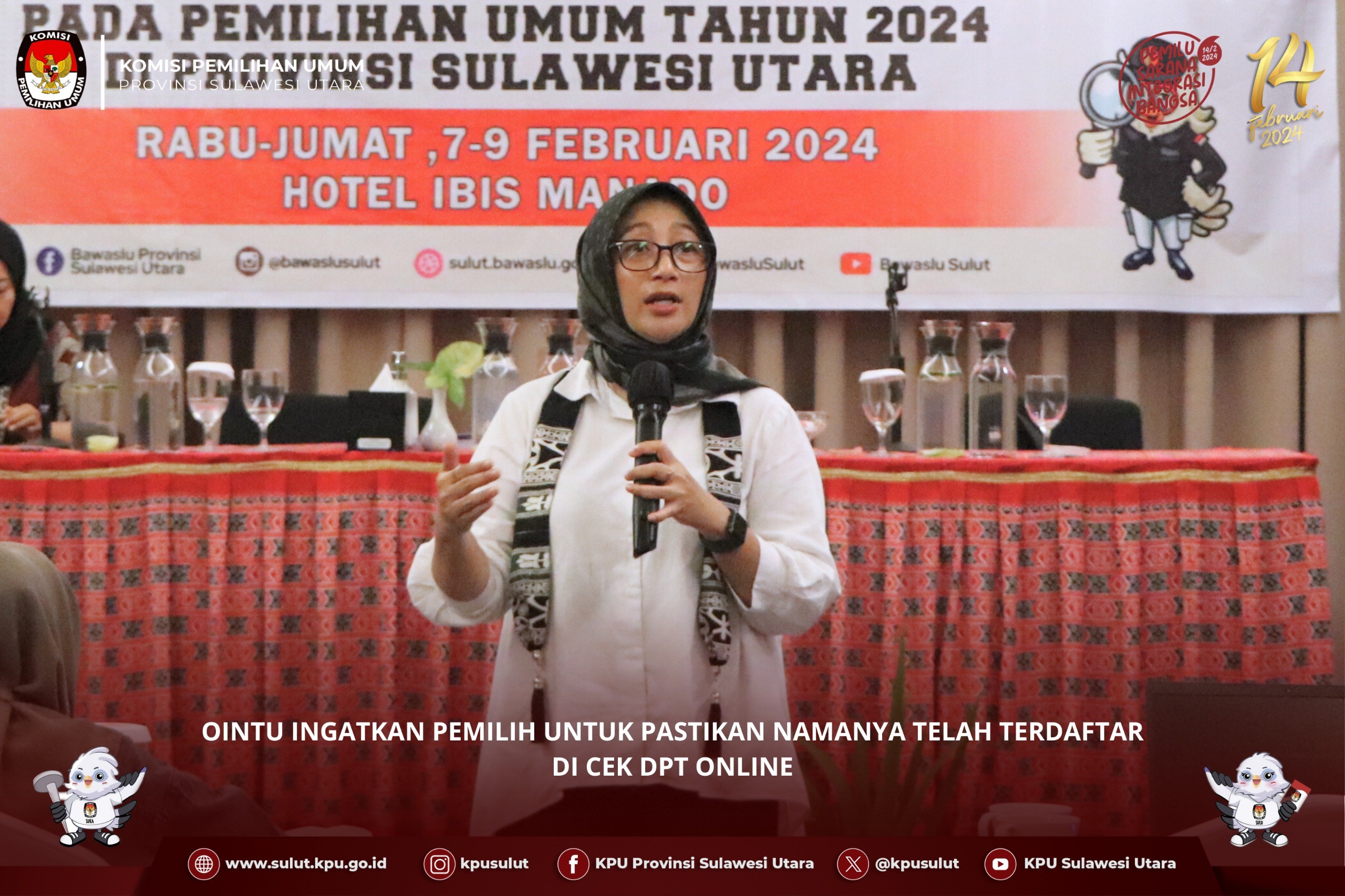 Manado, sulut.kpu.go.id - Badan Pengawas Pemilu (Bawaslu) mengadakan kegiatan Sosialisasi Dukungan Sekretariat Bersama Stakeholder Dalam Pengawasan Tahapan Pemungutan Serta Penghitungan Suara Pada Pemilihan Umum Tahun 2024 di Provinsi Sulawesi Utara bertempat di Hotel Ibiz Manado (8/2/2024). Kegiatan tersebut diusung oleh Kepala Sekretariat Bawaslu Provinsi Sulawesi Utara Aldrin Christian dan secara resmi di buka oleh Anggota Bawaslu Sulut Steffen Linu. Turut hadir sebagai peserta yaitu para tokoh agama, tokoh masyarakat, organisasi kepemudaan, media massa, dan para mahasiswa yang diwakili oleh anggota BEM dari masing-masing kampus. Pada kegiatan ini, Ketua Devisi Perencanaan, Data, dan Informasi Lanny Ointu diundang sebagai narasumber yang kemudian memaparkan mengenai Pemungutan dan Penghitungan Suara Pemilu Serentak Tahun 2024. Diawal paparannya, Ointu lebih dulu mengingatkan bagi para peserta untuk segera memastikan apakah sudah benar-benar terdaftar sebagai DPT melalui laman cekdptonline. Selain itu juga agar nanti saat hari-H pemungutan suara, para pemilih datang ke TPS dengan membawa KTP Elektronik dan C-Pemberitahuan. “Poin penting yang mau saya ingatkan juga untuk mengecek kembali surat suara yang diterima sebelum pencoblosan apakah tidak ada kerusakan dan telah ditandatangani oleh petugas KPPS atau belum”, ujar Ointu Selanjutnya dalam materinya Ointu menguraikan mekanisme pemungutan dan penghitungan suara yang diawali dari jadwal dan tahapan pemungutan suara, tahapan pemungutan dan penghitungan suara yang dimulai dengan pra pemungutan suara hingga proses pelaksanaan penghitungan suara. “Kalau bapak/ibu perhatikan KPU sekarang ini ditiap tahapannya telah berbasis teknologi, untuk tahapan pemungutan dan penghitungan suara ini kami menggunakan yang namanya Sistem Informasi Rekapitulasi (SiRekap). SiRekap ini telah kami gunakan pada Pilkada Tahun 2020 Jadi SiRekap ini adalah alat bantu untuk mempermudah proses penginputan dan rekapitulasi hasil pemilihan." jelas Ointu. Diakhir materi, Ointu juga menyampaikan harapannya agar semua yang hadir disini agar datang ke TPS pada tanggal 14 Februari 2024 nanti untuk menggunakan hak suaranya, supaya Sulawesi Utara bisa kembali menjadi daerah dengan jumlah partisi pemilih tertinggi se-Indonesia.(Ika/Ed:NR Foto by Wale Pemilu)