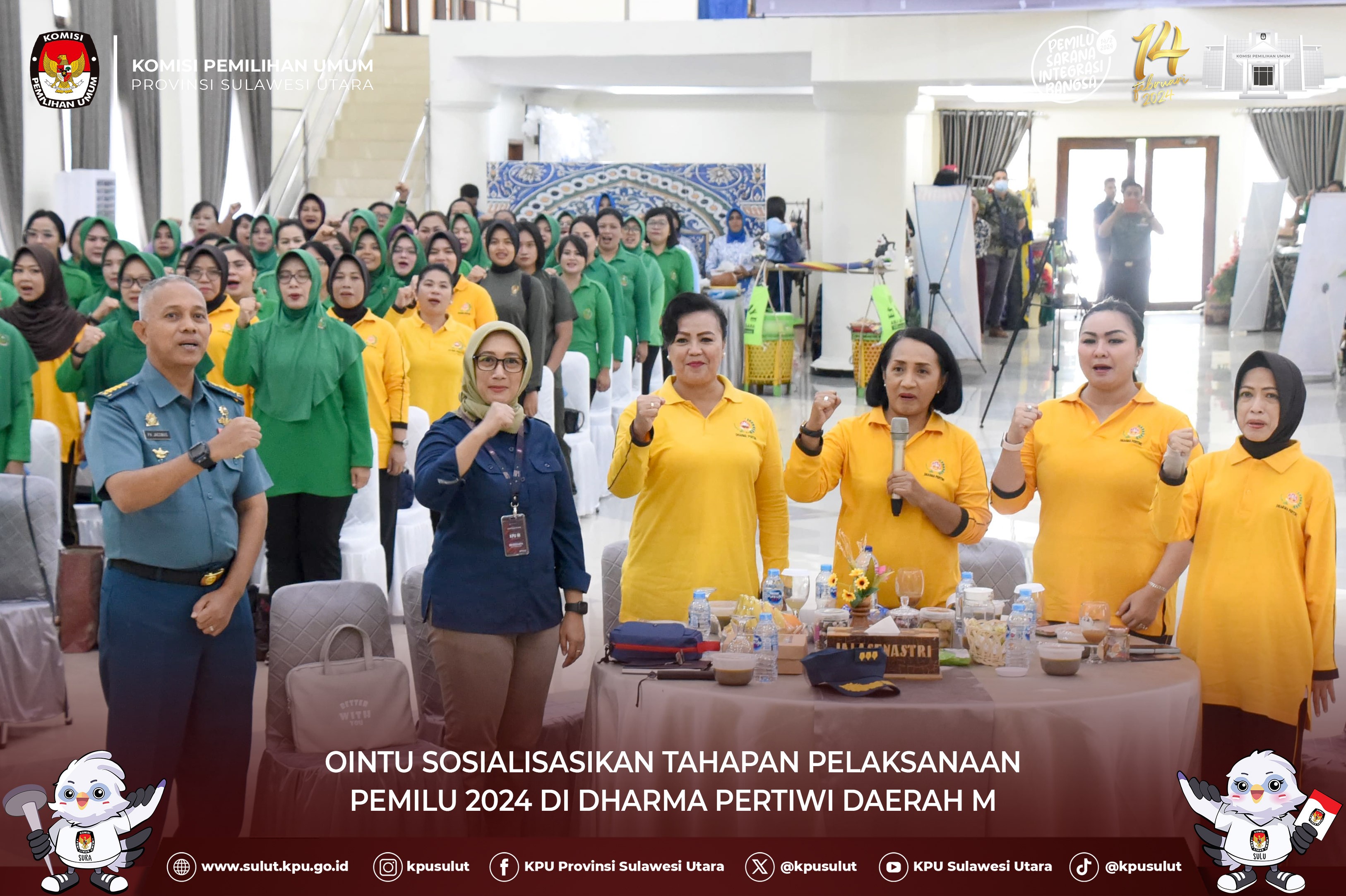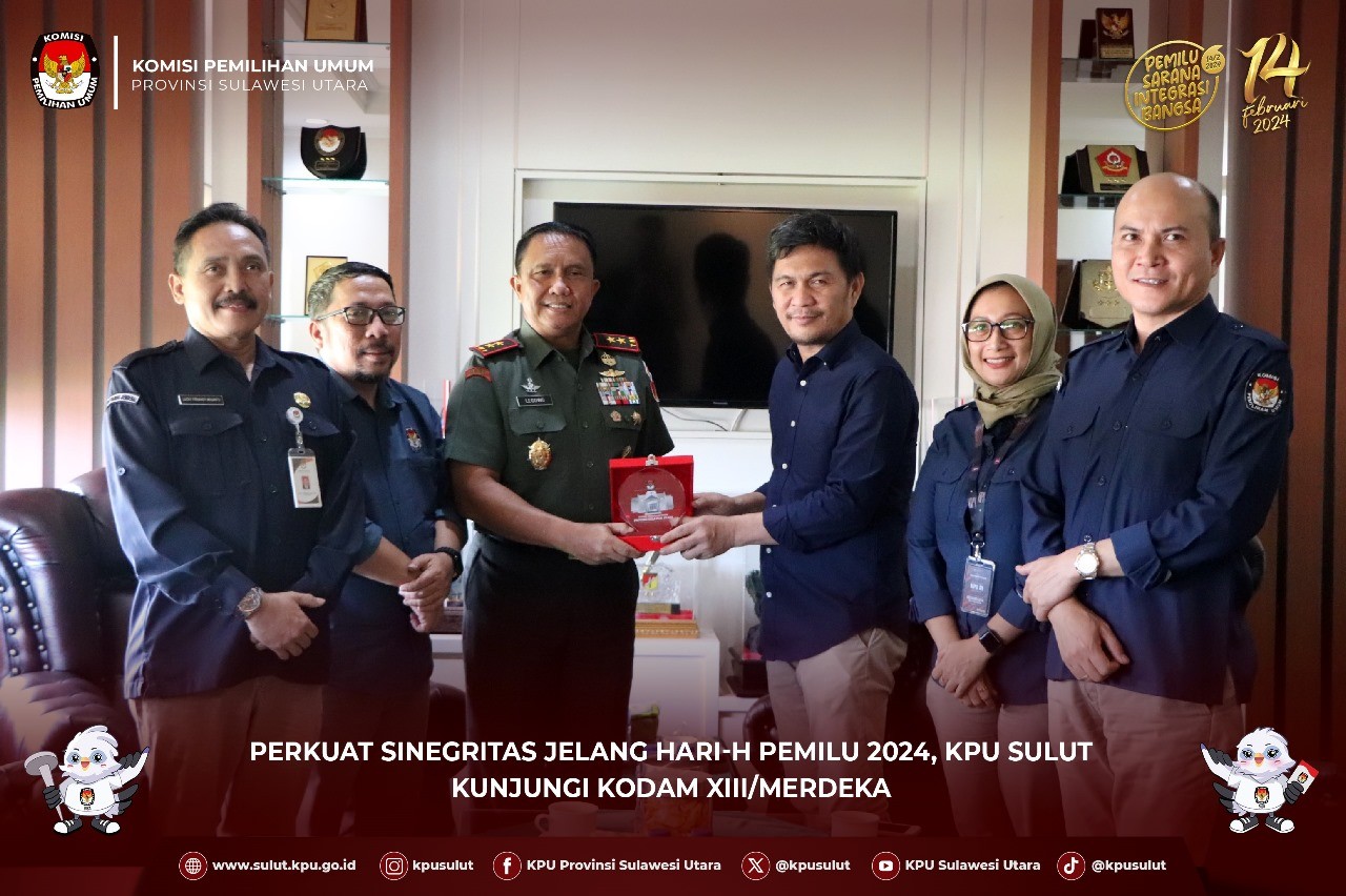 Manado, sulut.kpu.go.id - sebagai upaya memperkuat sinergitas antar lembaga jelang hari-H pemungutan suara, KPU Sulut melakukan kunjungan kerja ke Komando Daerah Militer XIII/Merdeka Manado, pada hari selasa (23/1/2024). Panglima Komando Daerah Militer XIII/Merdeka Mayor Jenderal TNI Robertua Legowo W.R Jatmiko,.S.IP., MM. menerima secara langsung kedatangan rombongan KPU Sulut. Ketua KPU Sulut Kenly Poluan memperkenalkan rombongan KPU Sulut yang hadir serta memaparkan kesiapan KPU Sulut menjelang Hari H Pemungutan Suara di tanggal14 Februari 2024. "saat ini kami terbagi beberapa konsentrasi tahapan pemilu diantaranya tahapan terkait logistik pemilu yang ada di KPU Kab/ Kota dalam proses pengesetan dan pengepakan selain itu pelaksanakan bimtek pungut hitung bagi badan adhoc Panitia Pemungutan Kecamatan (PPK) dan Panitia Pemungutan Suara (PPS) serta persiapan Pelantikan Serentak KPPS se- Sulut di tanggal 25 Januari 2024. Oleh karenanya KPU Sulut membutuhkan dukungan penuh dari Pihak TNI disetiap tahapan agar penyelenggaraan Pemilu 2024 dapat berjalan dengan lancar”, ujar Poluan Poluan juga mengatakan bahwa KPU Sulut memohon bantuan terkait penggunaan Alat Komunikasi lewat 1 frekuensi yang bisa digunakan pada Hari-H karena dengan penggunaan alat tersebut dapat mempermudah kami untuk mendapatkan informasi terkait hasil penghitungan suara khususnya pada TPS yang tidak mendapatkan signal yang memadai, untuk informasi ada sekitar kurang lebih 480 TPS dari jumlah keseluruhan 8240 TPS. “pindah memilih yang untuk 14 kategori alasannya telah berakhir pada tanggal 15 Januari 2024, namun ada 4 kategori alasan pindah memilih yang tahapannya masih berlangsung hingga tanggal 7 februari 2024”, papar Ketua Divisi Perencanaan, Data dan Informasi KPU Sulut Lanny Ointu Disisi lain Pangdam Legowo menanggapi hal-hal yang telah disampaikan oleh tim KPU Sulut, “ Pihak TNI khususnya Komando Daerah Militer XIII/Merdeka sepenuhnya akan mendukung KPU sesuai dengan mekanisme yang telah diatur mulai dari tingkat atas sampai tingkatan bawah, kami juga akan terus mengawal kerja KPU Sulut serta memastikan masyarakat Sulawesi Utara dapat memberikan suaranya di TPS dengan aman, tentunya koordinasi selanjutnya sangat dibutuhkan sampai pada tahapan hasil akhir Pemilu 2024. Hadir dalam kunjungan ini Anggota KPU Sulut Meidy Tinangon dan Sekretaris KPU Sulut Lucky Firnandy Majanto.(Ucu/Ed:NT Foto by Wale Pemilu)