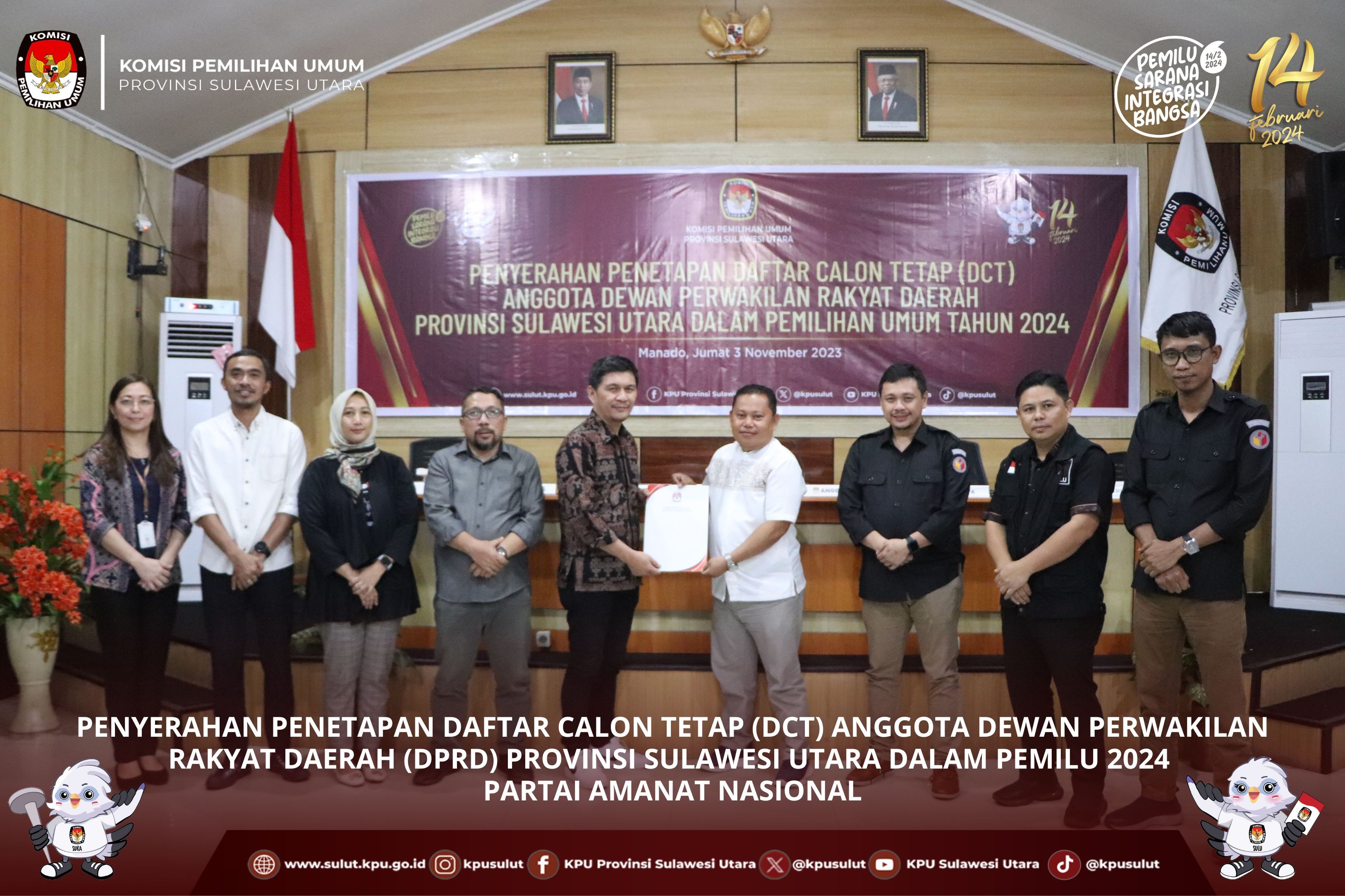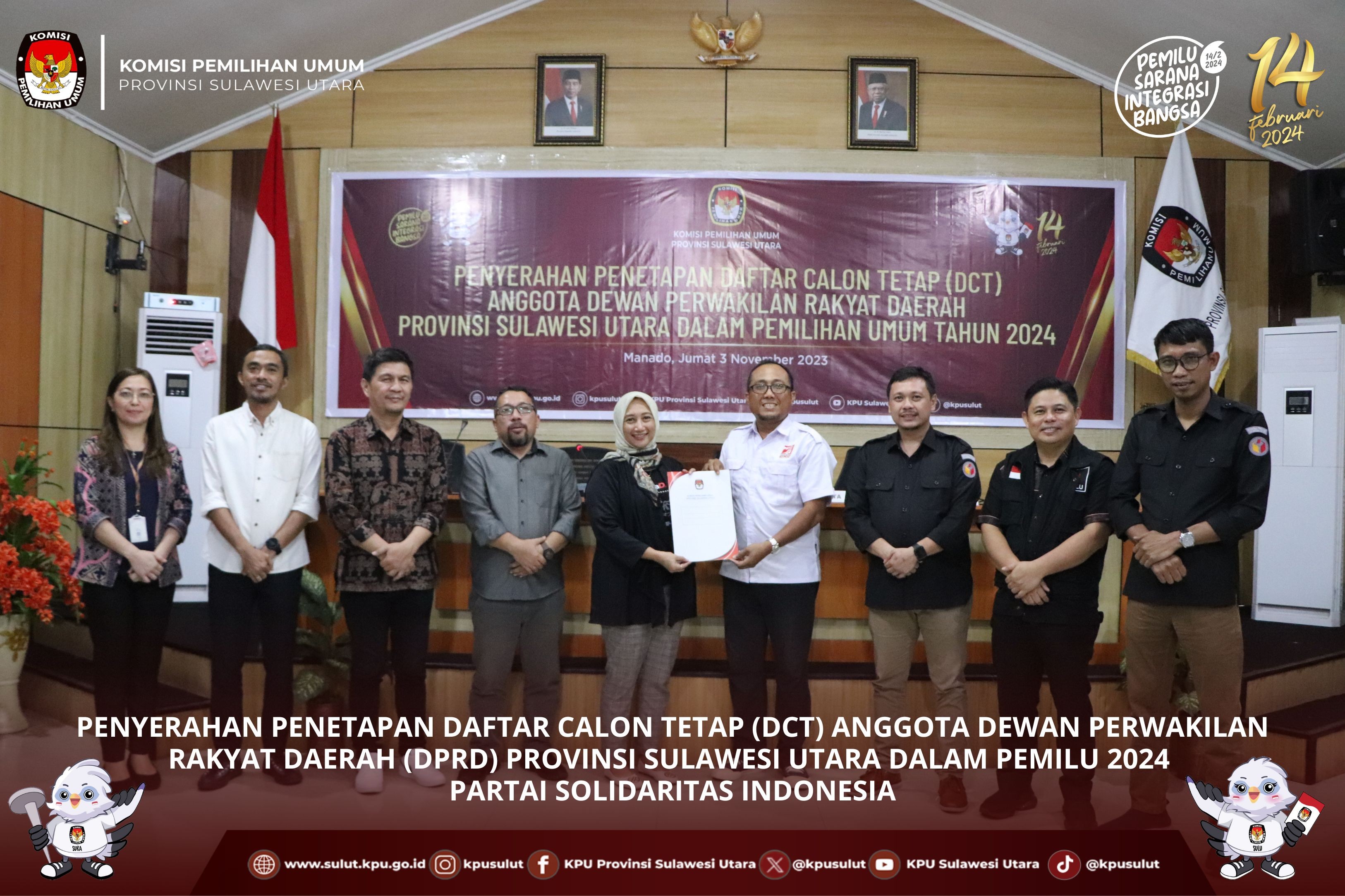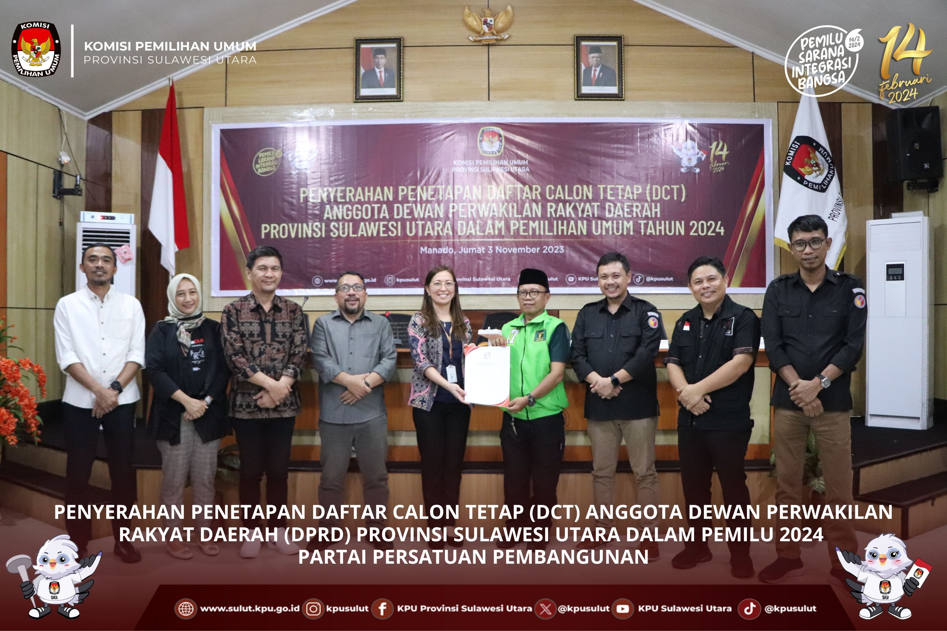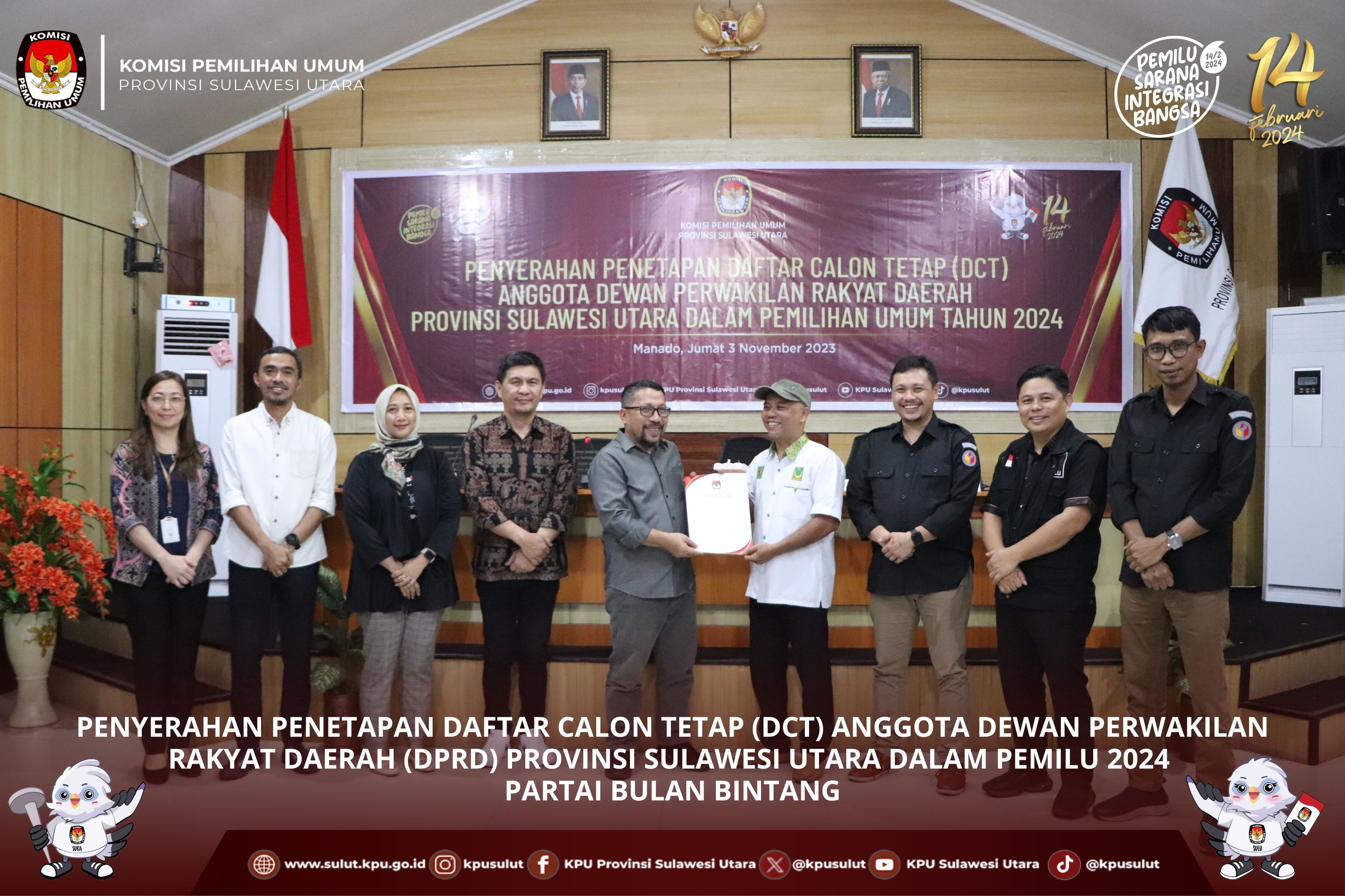 #TemanPemilih, KPU Provinsi Sulawesi Utara Laksanakan Penyerahan Penetapan Daftar Calon Tetap (DCT) Anggota Dewan Perwakilan Rakyat Daerah (DPRD) Provinsi Sulawesi Utara untuk Pemilu Serentak 2024 di Aula Kantor KPU Sulut (3/11).