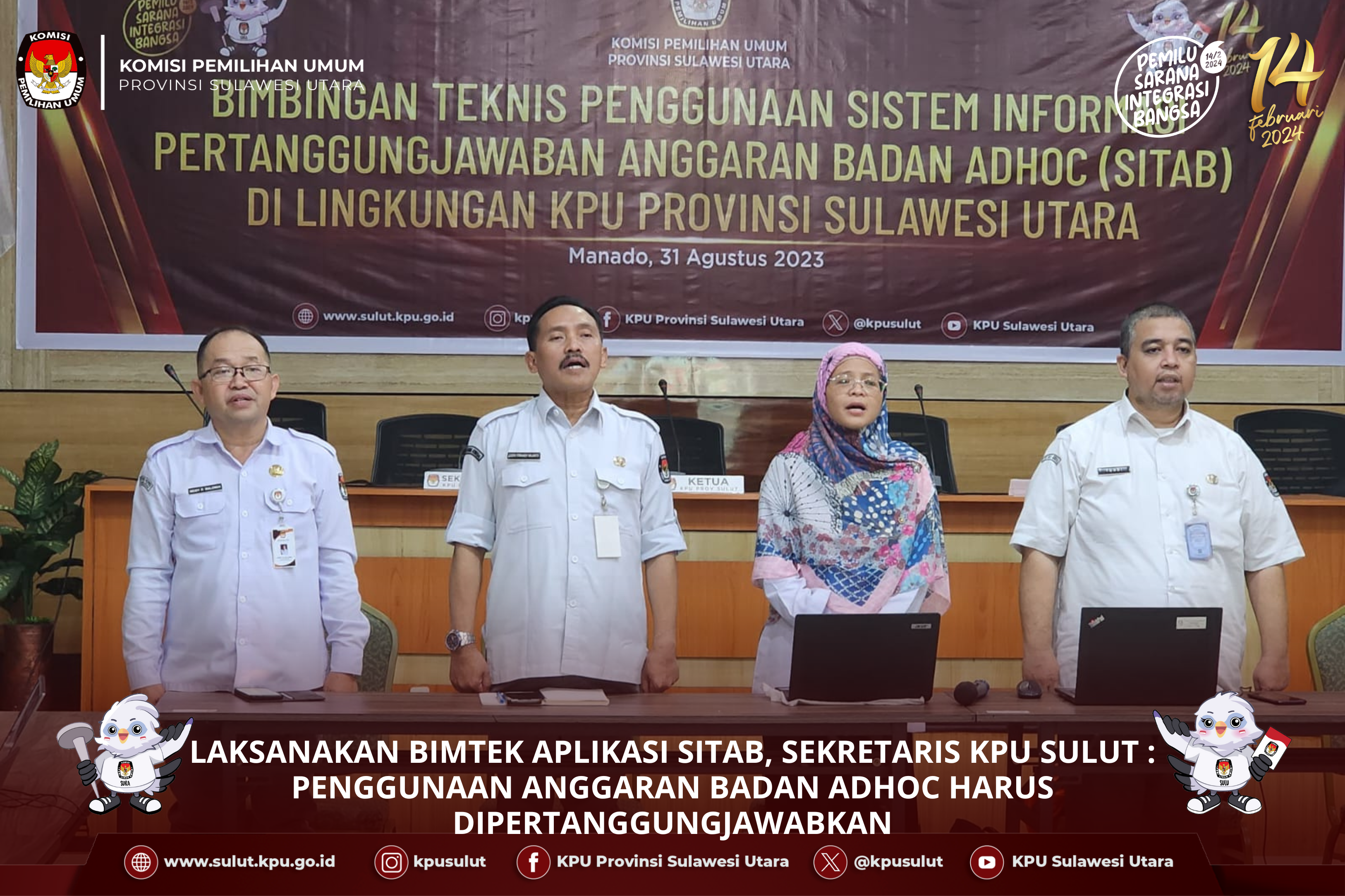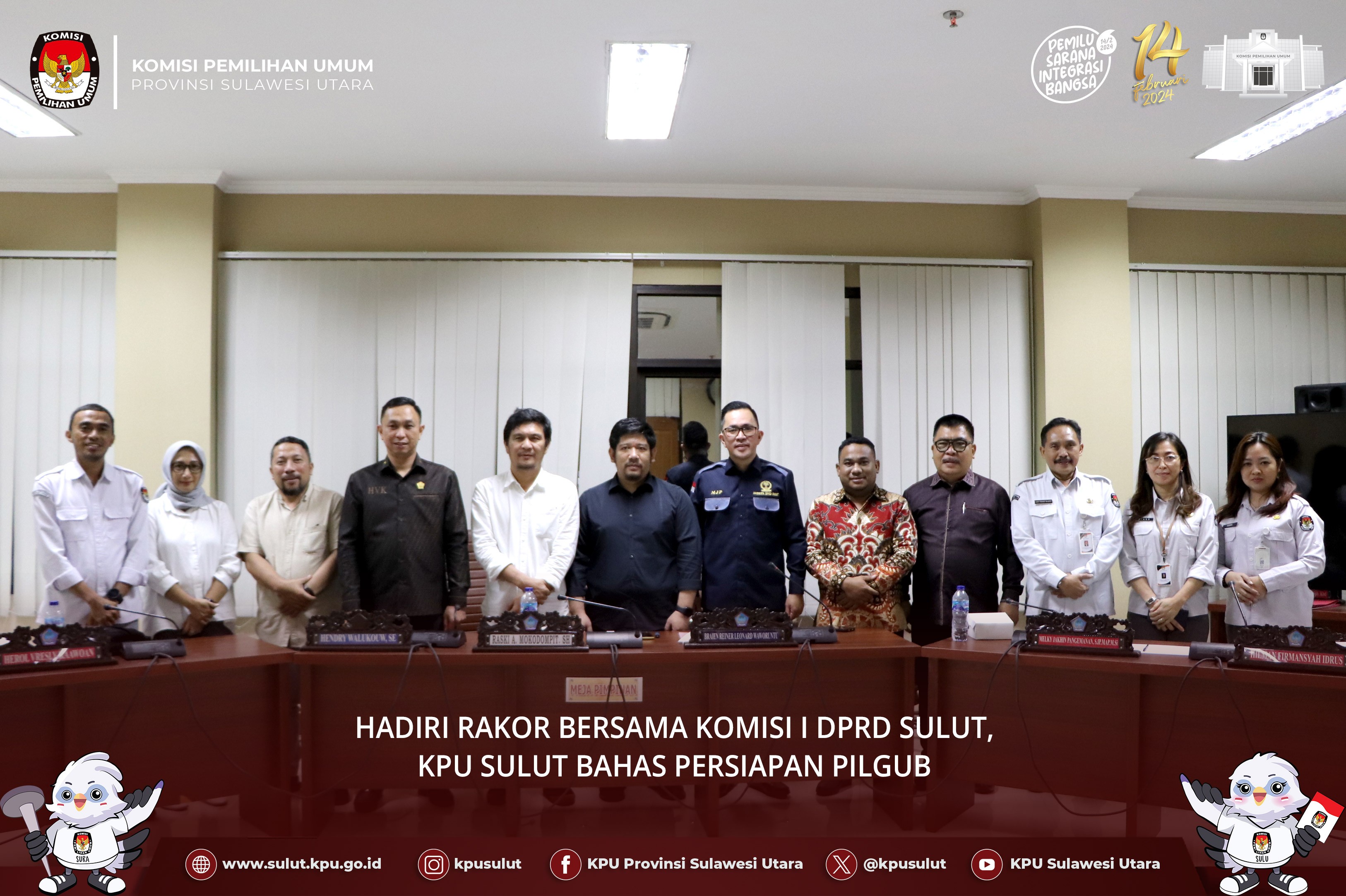 Hadir dalam kegiatan ini Kepala BIN Sulut Brigjen TNI Raymond Marojahan, SH.MH., Danrem 131 Santiago Brigjen TNI Wakhyono, S.Sos, MH, Kepala Kanwil Sulut Kemenkumham Dr. Ronald Lumbuun, Wakil Direktur Intelkam Polda Sulut AKPB Irham Halid SIK., Asisten Tindak Pidana Umum Kejaksaan Tinggi Sulut Jeffry Maukar, SH.MH., Asintel Lantamal Manado Kol. Andre Dotulong., Kadispoddirga LanudSri Manado Kol. Paulus Purwadi, Anggota DPRD Sulut Fabian Kaloh, Sekretaris KPU Sulut Lucky Firnandi Majanto, serta Ketua, Anggota dan Sekretaris KPU Kabupaten/Kota Se-Sulut.