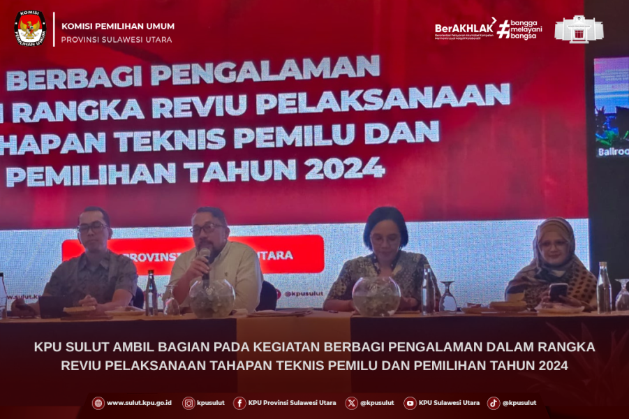 Untuk melakukan evaluasi menyeluruh terhadap pelaksanaan tahapan teknis, guna mengidentifikasi capaian, tantangan, serta pembelajaran berharga yang dapat dijadikan pijakan perbaikan ke depan. KPU melaksanakan kegiatan Berbagi Pengalaman Dalam Rangka Reviu Pelaksanaan Tahapan Teknis Pemilu dan Pemilihan Tahun 2024 di Hotel Anathera, Kuta Bali pada tanggal 30 Juli s.d 1 Agustus 2025. Kegiatan tersebut dibuka Anggota KPU Yulianto Sudrajat didampingi Anggota KPU Idham Holik dan August Mellaz serta Deputi Bidang Teknis KPU Eberta Kawima. Dalam sambutannya, Sudrajat mengatakan bahwa seiring dengan perkembangan pembahasan UU Pemilu dan Pilkada hingga keluarnya Putusan MK, kegiatan berbagi pengalaman mengenai dinamika Pemilu dan Pilkada Serentak 2024 menjadi sangat penting, agar dapat menghasilkan rekomendasi-rekomendasi yang nantinya akan digunakan KPU sebagai masukan kepada pembuat UU, yaitu Pemerintah dan DPR. Sementara itu, Mellaz dalam penyampaiannya berharap hasil dari kegiatan ini dapat dicatat dengan sebaik-baiknya, lalu dinarasikan menjadi cerita perjalanan pemilu dan pemilihan, khususnya mengenai aspek teknis kepemiluan, dan selanjutnya dipublikasikan melalui kanal-kanal yang dimiliki KPU. Dalam kesempatan berikutnya, Idham Holik membagikan pengalaman serta upaya dalam memajukan KPU ke depan. Holik juga menekankan agar seluruh jajaran berpikir kreatif dan inovatif (out of the box), sebab dalam penyelenggaraan pemilu dan pilkada selalu ada tantangan yang kadang tidak tercakup dalam regulasi yang berlaku. Setelah itu, kegiatan dilanjutkan dengan pemaparan berbagi pengalaman dari KPU Kabupaten/Kota yang ditunjuk oleh KPU. Hari kedua, pemaparan berbagi pengalaman dari KPU/KIP Provinsi se-Indonesia. Pada kesempatan itu, Ketua Divisi Teknis Penyelenggara KPU Sulut Salman Saelangi yang hadir bersama Kabag Teknis Penyelenggaraan Pemilu dan Hukum KPU Sulut Carles Worotitjan memaparkan materi berbagi pengalaman Tahapan Pencalonan Pemilihan Gubernur dan Wakil Gubernur Sulut Tahun 2024. Di hari terakhir, acara ditutup oleh Anggota KPU Yulianto Sudrajat didampingi Anggota KPU Idham Holik dan Deputi Bidang Teknis KPU Eberta Kawima. Turut hadir dalam kegiatan, Kepala Biro Teknis KPU Melgia Van Harling, Ketua dan Anggota KPU Bali. Adapun peserta kegiatan, Ketua Divisi Teknis Penyelenggaraan KPU/KIP Provinsi dan Kabag/Kasubag Teknis Penyelenggaraan Pemilu KPU/KIP Provinsi hadir secara langsung serta KPU/KIP Kabupaten Kota Divisi Teknis Penyelenggaraan dan Kepada Sub Bagian KPU/KIP Kabupaten/Kota yang membidangi Teknis Penyelenggaraan Pemilu dan Hukum yang hadir secara daring.