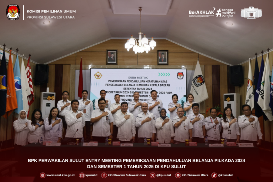 Manado, sulut.kpu.go.id — KPU Sulut menerima kedatangan Badan Pemeriksa Keuangan (BPK) Perwakilan Sulawesi Utara dalam kegiatan Entry Meeting Pemeriksaan Pendahuluan Kepatuhan atas Pengelolaan Belanja Pemilihan Kepala Daerah Serentak Tahun 2024 Periode Tahun 2024 sampai dengan Semester I Tahun 2025 yang digelar di Aula Kantor KPU Sulut, senin (28/07). Kegiatan ini merupakan langkah awal dalam proses audit kepatuhan terhadap penggunaan dana hibah Pilkada, khususnya yang bersumber dari Anggaran Pendapatan dan Belanja Daerah (APBD) Provinsi Sulut . Ketua KPU Sulut Kenly Poluan, dalam sambutannya menyampaikan bahwa pelaksanaan pemeriksaan ini merupakan wujud nyata komitmen KPU dalam mewujudkan tata kelola keuangan yang transparan dan Akuntabel “Entry meeting ini merupakan bagian dari proses pengawasan yang kami sambut baik, sebagai bentuk pertanggungjawaban atas pengelolaan dana hibah Pilkada 2024 sesuai dengan peraturan perundang-undangan. Kami siap memberikan data dan informasi yang dibutuhkan, serta mendukung penuh proses pemeriksaan dari BPK,” ujar Kenly. Sementara itu Wakil Penanggung Jawab BPK Perwakilan Sulut Coreman Maruli Tua menjelaskan bahwa pemeriksaan ini bertujuan untuk menguji kepatuhan belanja apakah telah sesuai dengan peraturan perundang-undangan yang dalam hal ini kepatuan atas pelaksaan kegiatan belanja penyelenggaraan pemilihan Kepala Daerah Gubernur/Wakil Gubernur di Sulawesi Utara. Dalam kegiatan ini, tim BPK juga memaparkan ruang lingkup pemeriksaan, pendekatan audit yang akan digunakan, serta rencana kerja selama masa pemeriksaan berlangsung. Turut Hadir Anggota KPU Sulut Meidy Tinangon, Lanny Ointu didampingi Sekretaris Meidy Malonda, Pejabat Struktural, Fungsional dan Staf Pengelola Keuangan KPU Sulut