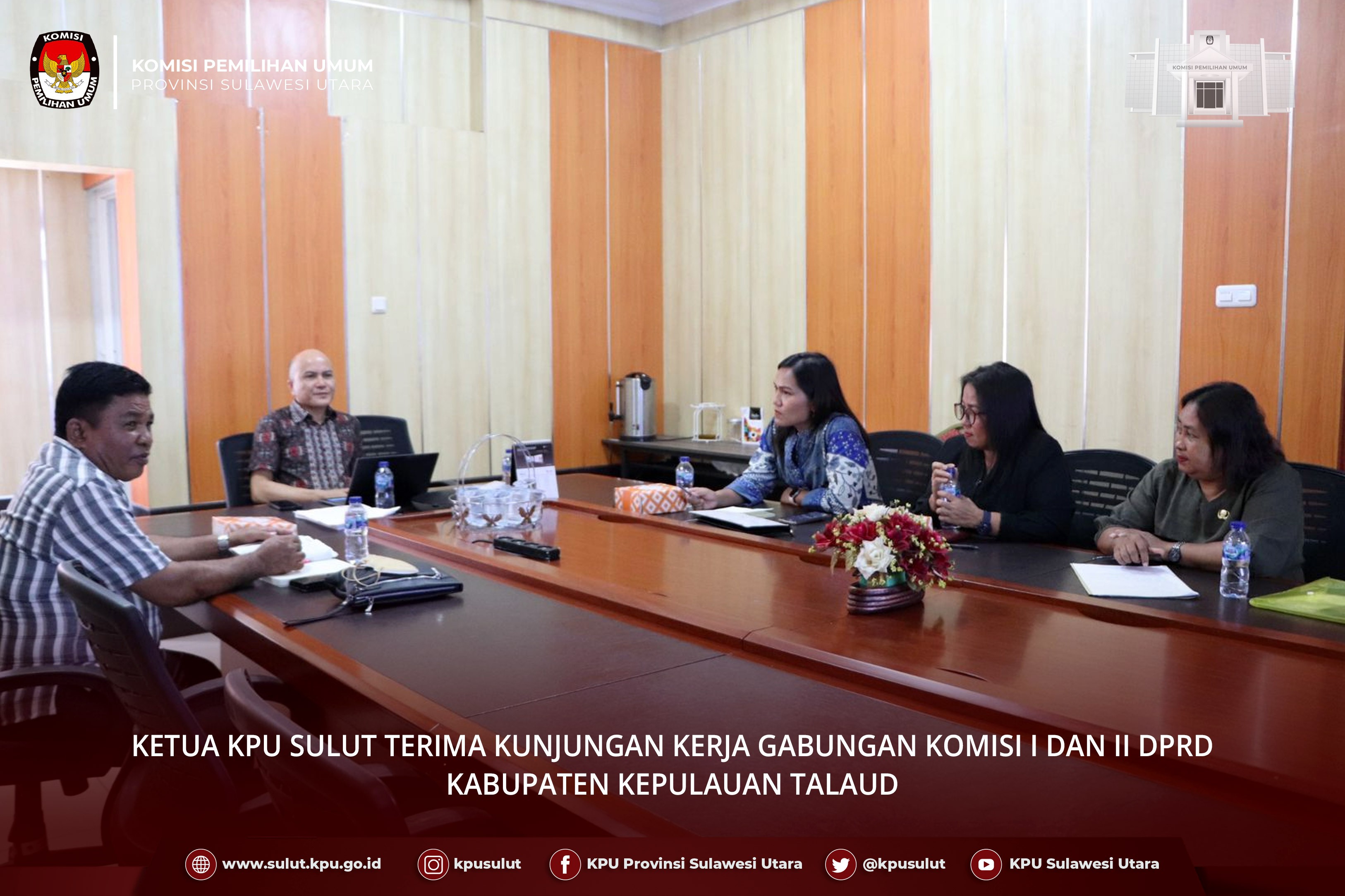 Manado, sulut.kpu.go.id - DPRD Kabupaten Kepulauan Talaud yang diwakili Gabungan Komisi I dan Komisi II berkesempatan melakukan kunjungan kerjanya di KPU Provinsi Sulawesi Utara. Kunker tersebut terlaksana pada hari Jumat (17/2) bertempat di Ruang Rapat Ketua KPU Sulut. Tim DPRD Kabupaten Kepulauan Talaud ini diterima langsung oleh Ketua KPU Sulut Meidy Tinangon didampingi oleh Kepala sub bagian Teknis dan Parhupmas Greis W. Tamba. Sebelum menyampaikan perihal kunjungannya Wakil Ketua Komisi I Janastasya Ch. Parapaga memperkenalkan setiap anggota DPRD yang hadir. Parapaga selanjutnya menjelaskan maksud dan tujuan konsultasi. Menurutnya, ada 2 hal penting yang hendak dikonsultasikan. “Kedatangan kami ke sini dalam rangka konsultasi terkait Pemilu dan Pemilihan Tahun 2024, di mana ada beberapa hal yang kami pertanyakan. Pertana, terkait bagaimana pengaturan tentang Penjabat Bupati dan Wakil Bupati jelang Pilkada serentak Tahun 2024." Selain itu, menurut Parapaga mereka hendak berkonsultadi terkait jika ada legislator yg partainya tidak lolos pada tahapan pemilu ingin berpindah partai. Meidy Tinangon selaku Ketua KPU Sulut terlebih dahulu mengucapkan selamat datang dan ungkapan terima kasih atas kunjungan rombongan Komisi I dan Komisi II DPRD Kabupaten Kepulauan Talaud. "Terima kasih sudah datang berkunjung di kantor KPU Sulut. Hal ini menandakan kepedulian DPRD Kabupaten Talau terhadap suksesnya tahapan pemilu dan pemilihan,’’ ungkap Tinangon. Adapun perihal pertanyaan- pertanyaan tim DPRD Sulut terkait Penjabat Bupati, Tinangon menjelaskan dasar aturan perundang-undangan yg ada. "Terkait pertanyaan tentang Penjabat Bupati, Tinangon menjelaskan bahwa hal tersebut diatur dalam pasal 201 UU Pilkada. Namun hal tersebut, menjadi domain kewenangan Kementerian Dalam Negeri, bukan kewenangan KPU. "Saran saya untuk memastikannya bapak/ibu sekalian harus berkonsultasi dengan pihak Kementerian Dalam Negeri (Kemendagri) karena hal itu adalah wilayah kewenangan Mendagri," ungkapnya. Sementara itu terkait anggota DPRD yang partainya tidak lolos sebagai peserta pemilu dan berkeinginan untuk pindah partai, Tinangon menjelaskan bahwa hal.tersebut adalah wilayah kewenangan parpol, apakah akan memecat kadernya atau tidak. "masing-masing parpol punya pengaturan internal sehingga proses tersebut seyogyanya di internal partai,” pungkas Tinangon. Menurut Tinangon, pihak KPU hanya melakukan proses PAW berdasarkan surat Pimpinan DPRD, dan tidak bisa mencampuri urusan internal parpol. Turut hadir dalam kunjungan kerja tersebut Wakil Ketua Komisi II Hibor Maabuat, Anggota Komisi I Lily Sahoa serta staf Sekretariat. (Bb/Foto by Wale Pemilu)