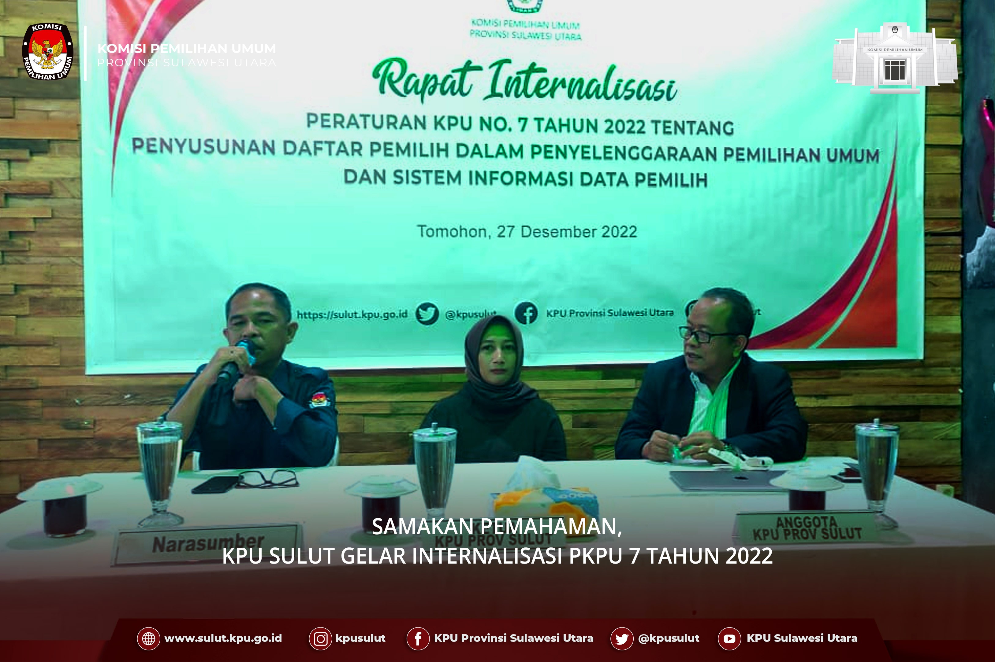 Manado, sulut.kpu.go.id – Berdasarkan Peraturan Komisi Pemilihan Umum Nomor 7 Tahun 2022 Tentang Penyusunan Daftar Pemilih Dalam Penyelenggaraan Pemilihan Umum dan Sistem Informasi Data Pemilih, tahapan Pemutakhiran data pemilih siap dilaksanakan. Itulah sebabnya Komisi Pemilihan Umum Provinsi Sulawesi Utara melakukan Rapat Internalisasi dengan KPU Kabupaten/Kota Se-Sulawesi Utara, di Kota Tomohon (Sky Cafe & Lounge), Selasa (27/12/2022). Hadir sebagai narasumber Ketua Dept Politik & Ilmu Pemerintahan UNDIP Nur Hidayat Sardini Rakor dibuka oleh Amrain Razak selaku Ketua Divisi Sosialisasi, Pendidikan Pemilih dan Partisipasi Masyarakat, SDM. Dalam sambutannya Amrain menyampaikan bahwa tujuan di selenggarakannya kegiatan ini guna mendapatkan pemahaman dan persepsi yang sama terhadap Peraturan Komisi Pemilihan Umum Nomor 7 Tahun 2022 Tentang Penyusunan Daftar Pemilih Dalam Penyelenggaraan Pemilihan Umum dan Sistem Informasi Data Pemilih. Selanjutnya Lanny Ointu selaku Ketua Divisi Perencanaan Data dan Informasi memaparkan materi Peraturan Komisi Pemilihan Umum Nomor 7 Tahun 2022 Tentang Penyusunan Daftar Pemilih Dalam Penyelenggaraan Pemilihan Umum dan Sistem Informasi Data Pemilih. Ointu meminta KPU Kabupaten/Kota aktif memberikan pendapat dan pandangannya terhadap PKPU 7 jika ada pasal yang terindikasi akan multi tafsir hingga pemahaman semua Kabupaten/Kota tidak berbeda. Pelaksanaan kegiatan tersebut dihadiri oleh Ketua Divisi Perencanaan, Data dan Informasi, Kepala Sub Bagian Perencanaan, Data dan Informasi serta Operator Sidalih KPU Kabupaten/Kota Se-Sulawesi Utara. (Ipung/ed.LA)
