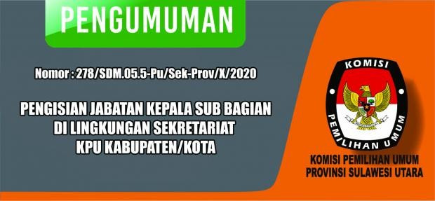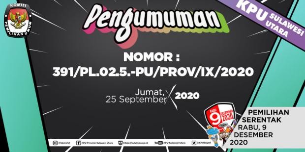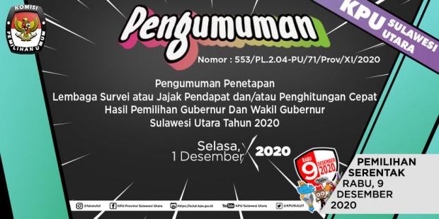 pengumuman KPU Provinsi Sulawesi Utara nomor : 461/PL.02.4-PU/71/Prov/X/2020