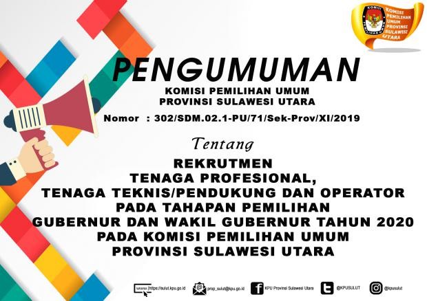 Manado, sulut.kpu.go.id - Setelah sebelumnya KPU Republik Indonesia menetapkan Pemilihan Serentak Lanjutan melalui Surat Keputusan Nomor 258/PL.02-Kpt/01/KPU/VI/2020 tentang Penetapan Pelaksanaan Pemilihan Gubernur dan Wakil Gubernur, Bupati dan Wakil Bupati, dan/atau Wali Kota dan Wakil Wali Kota Serentak Lanjutan Tahun 2020, tertanggal 15 Juni 2020, maka KPU Provinsi Sulawesi Utara menindaklanjuti dengan menetapkan Pemilihan Gubernur Dan Wakil Gubernur Sulawesi Utara Lanjutan Tahun 2020 melalui Surat Keputusan Nomor 69/PP.01.2-Kpt/71/Prov/VI/2020 tertanggal 15 Juni 2020. Dalam pertimbangan keputusan KPU Sulut tersebut disebutkan bahwa berdasarkan ketentuan Pasal 8B Peraturan Komisi Pemilihan Umum Nomor 5 Tahun 2020 tentang Perubahan Ketiga atas Peraturan Komisi Pemilihan Umum Nomor 15 Tahun 2019 tentang Tahapan, Program dan Jadwal Penyelenggaraan Pemilihan Gubernur dan Wakil Gubernur, Bupati dan Wakil Bupati, dan/atau Wali Kota dan Wakil Wali Kota Tahun 2020, yang menyatakan bahwa pelaksanaan pemungutan suara serentak yang ditunda karena terjadi bencana nonalam Corona Virus Disease 2019 (COVID-19) dilaksanakan pada tanggal 9 Desember 2020. Pertimbangan lainnya adalah Keputusan Komisi Pemilihan Umum Nomor 258/PL.02-Kpt/01/KPU/VI/2020 tentang Penetapan Pelaksanaan Pemilihan Gubernur dan Wakil Gubernur, Bupati dan Wakil Bupati, dan/atau Wali Kota dan Wakil Wali Kota Serentak Lanjutan Tahun 2020 Isi penetapan dalam SK KPU Sulut Nomor 69/PP.01.2-Kpt/71/Prov/VI/2020 adalah pertama, menetapkan pelaksanaan Pemilihan Gubernur dan Wakil Gubernur Sulawesi Utara Lanjutan Tahun 2020, dimulai dari tahapan yang tertunda meliputi: Pelantikan dan Masa Kerja Panitia Pemungutan Suara; Verifikasi Syarat Dukungan Pasangan Calon Perseorangan; Pembentukan dan Masa Kerja Petugas Pemutakhiran Data Pemilih; dan Pemutakhiran dan Penyusunan Daftar Pemilih. Kedua, pelaksanaan Pemilihan Gubernur dan Wakil Gubernur Sulawesi Utara Lanjutan sebagaimana dimaksud dalam Diktum KESATU dimulai sejak tanggal 15 Juni 2020, dengan berpedoman pada Peraturan Komisi Pemilihan Umum yang mengatur tentang Tahapan, Program dan Jadwal Penyelenggaraan Pemilihan Gubernur dan Wakil Gubernur, Bupati dan Wakil Bupati, dan/atau Wali Kota dan Wakil Wali Kota Tahun 2020. Ketiga, pada saat Keputusan ini mulai berlaku, Keputusan Komisi Pemilihan Umum Provinsi Sulawesi Utara Nomor 50/PL.02.2-Kpt/71/Prov/III/2020 tentang Penundaan Tahapan Pemilihan Gubernur dan Wakil Gubernur Sulawesi Utara Tahun 2020 Dalam Upaya Pencegahan Penyebaran Covid-19, dinyatakan dicabut dan dinyatakan tidak berlaku. Keputusan tentang pelaksanaan Pemilihan Lanjutan juga dilakukan oleh 7 KPU Kabupaten/Kota yang menyelenggarakan Pemilihan Bupati dan Wakil Bupati dan/atau Wali Kota dan Wakil Wali Kota. Dengan telah dimulainya tahapan Pemilihan Tahun 2020 maka pada hari ini juga Senin, 15 Juni 2020 secara serentak 15 (lima belas) KPU Kabupaten/Kota melaksanakan pelantikan Panitia Pemungutan Suara (PPS) Pemilihan Tahun 2020 secara daring/online guna mentaati protokol Pencegahan Corona Virus Disease 2019 (COVID-19).
