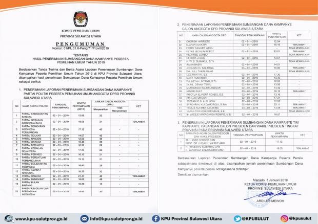 Keputusan Komisi Pemilihan Umum Provinsi Sulawesi Utara Nomor 136/PL.01.4-Kpt/71/Prov/XII/2018 KLIK DISINI