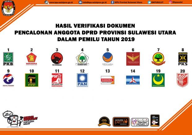 Manado, sulut.kpu.go.id - Sebagaimana diatur dalam Peraturan Komisi Pemilihan Umum (PKPU) Nomor 5 Tahun 2018 tentang Perubahan Atas PKPU Nomor 7 Tahun 2017 Tentang Tahapan, Program, dan Jadwal Penyelenggaraan Pemilihan Umum Tahun 2019 dan PKPU Nomor 20 Tahun 2018 Pencalonan Anggota DPR, DPRD Provinsi dan DPRD Kabupaten Kota, maka bersama ini KPU Provinsi Sulawesi Utara Resmi mengumumkan Daftar Calon Sementara (DCS) Anggota DPRD Provinsi Sulawesi Utara untuk Pemilu 2019. Hal ini sebagaimana tertuang dalam Pengumuman KPU Provinsi Sulawesi Utara Nomor : 211 /PL.01.4-Pu/71/Prov/VIII/2018. No Partai Politik File 1 Partai Kebangkitan Bangsa Download 2 Partai Gerindra Download 3 Partai Demokrasi Indonesia Perjuangan Download 4 Partai Golkar Download 5 Partai Nasdem Download 6 Partai Garuda Download 7 Partai Berkarya Download 8 Partai Keadilan Sejahtera Download 9 Partai Perindo Download 10 Partai Persatuan Pembangunan Download 11 Partai Solidaritas Indonesia Download 12 Partai Amanat Nasional Download 13 Partai Hanura Download 14 Partai Demokrat Download 19 Partai Bulan Bintang Download 20 Partai Keadilan dan Persatuan Indonesia Download Kepada Masyarakat agar dapat memberikan masukan dan/atau tanggapan terkait persyaratan Bakal Calon sebagaimana disyaratkan dalam PKPU Nomor 20 Tahun 2018 dan ketentuan perundang-undang yang berlaku. Tanggapan masyarakat disampaikan kepada KPU Provinsi Sulawesi Utara dengan alamat Jl Diponegoro No 25 Teling Atas Manado, dan/atau KPU Kabupaten/Kota se-Sulawesi Utara, tanggapan disampaikan secara tertulis dengan melampirkan identitas diri yang jelas paling lama 10 (sepuluh) hari sejak tanggal 12 Agustus 2018 sampai dengan 22 Agustus 2018 sesuai Jam kerja. (admin:kpusulut/evans)